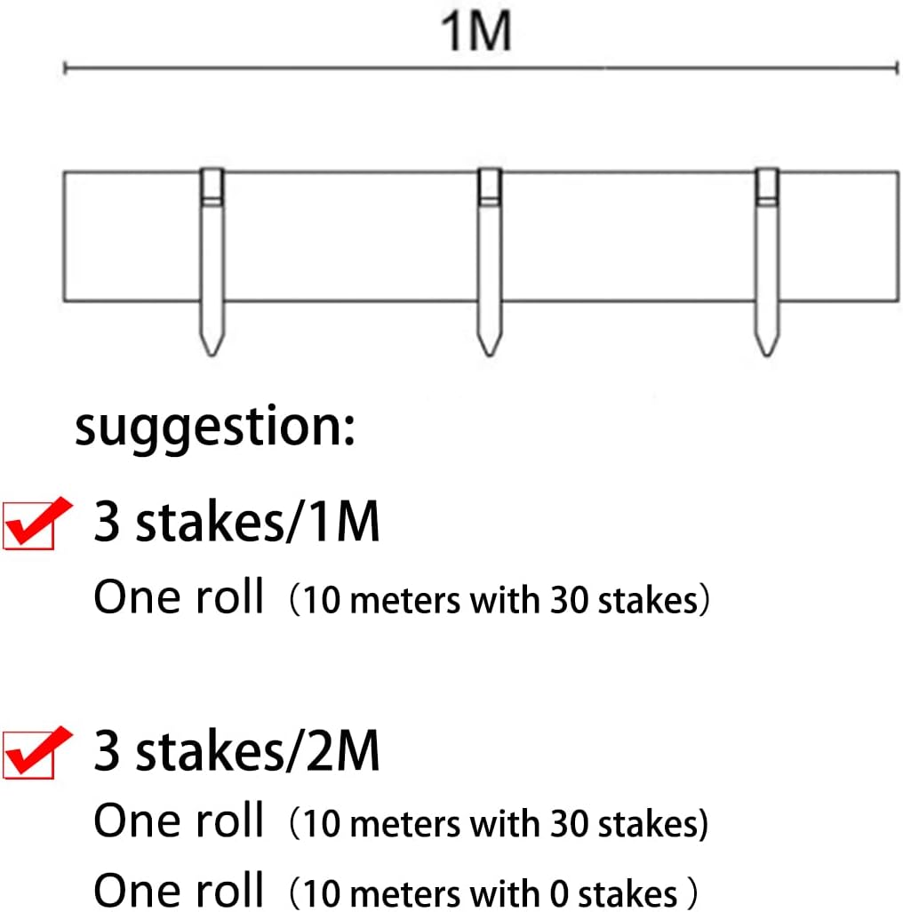 - 【You Will Get】The landscape border kit include:one roll - 33 feet(10 meter) long-4.75 inches height black ;30 stakes provided.According to your need ,you may buy additional stakes, you may also buy one garden edging with stakes, two rolles share 30 stakes.