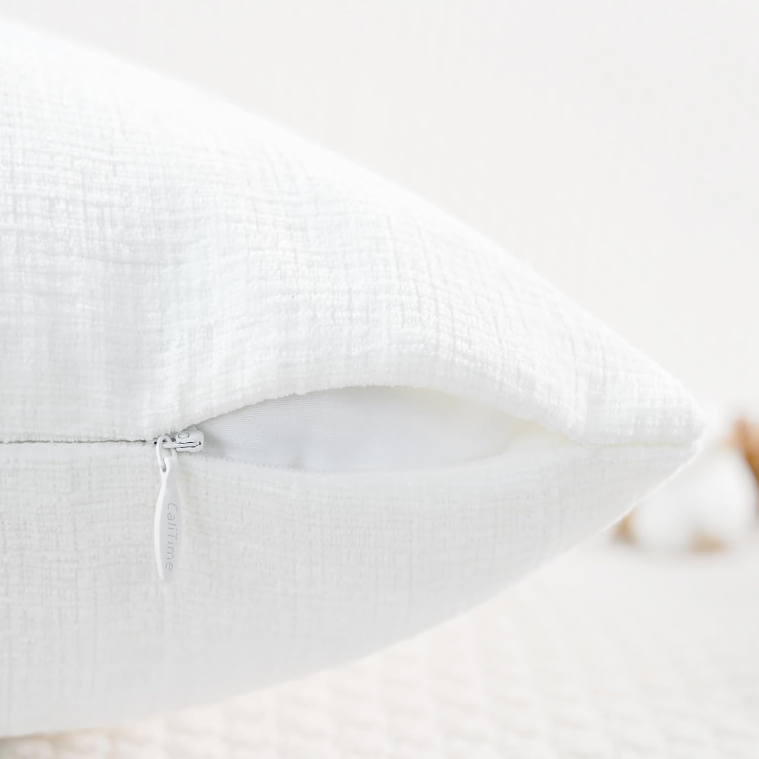 CaliTime Throw Pillow Covers Decorative 18 X 18 Inches Pack of 4 Cozy Chenille Cushion Cases for Couch Sofa Bed Living Room Home True White