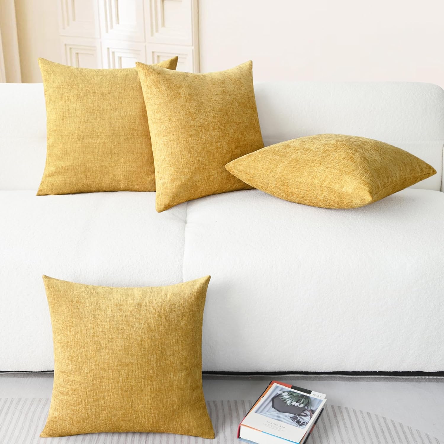 CaliTime Throw Pillow Covers Decorative 18 X 18 Inches Pack of 4 Cozy Chenille Cushion Cases for Couch Sofa Bed Living Room Home Gold