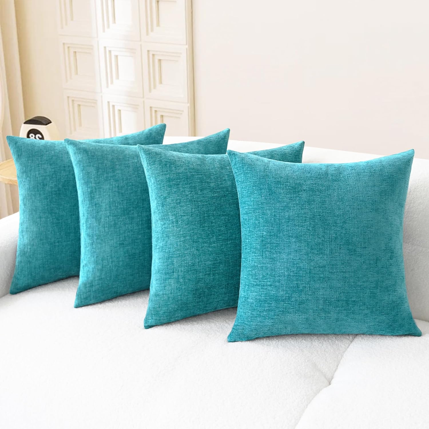 CaliTime Throw Pillow Covers Decorative 18 X 18 Inches Pack of 4 Cozy Chenille Cushion Cases for Couch Sofa Bed Living Room Home Lake Blue
