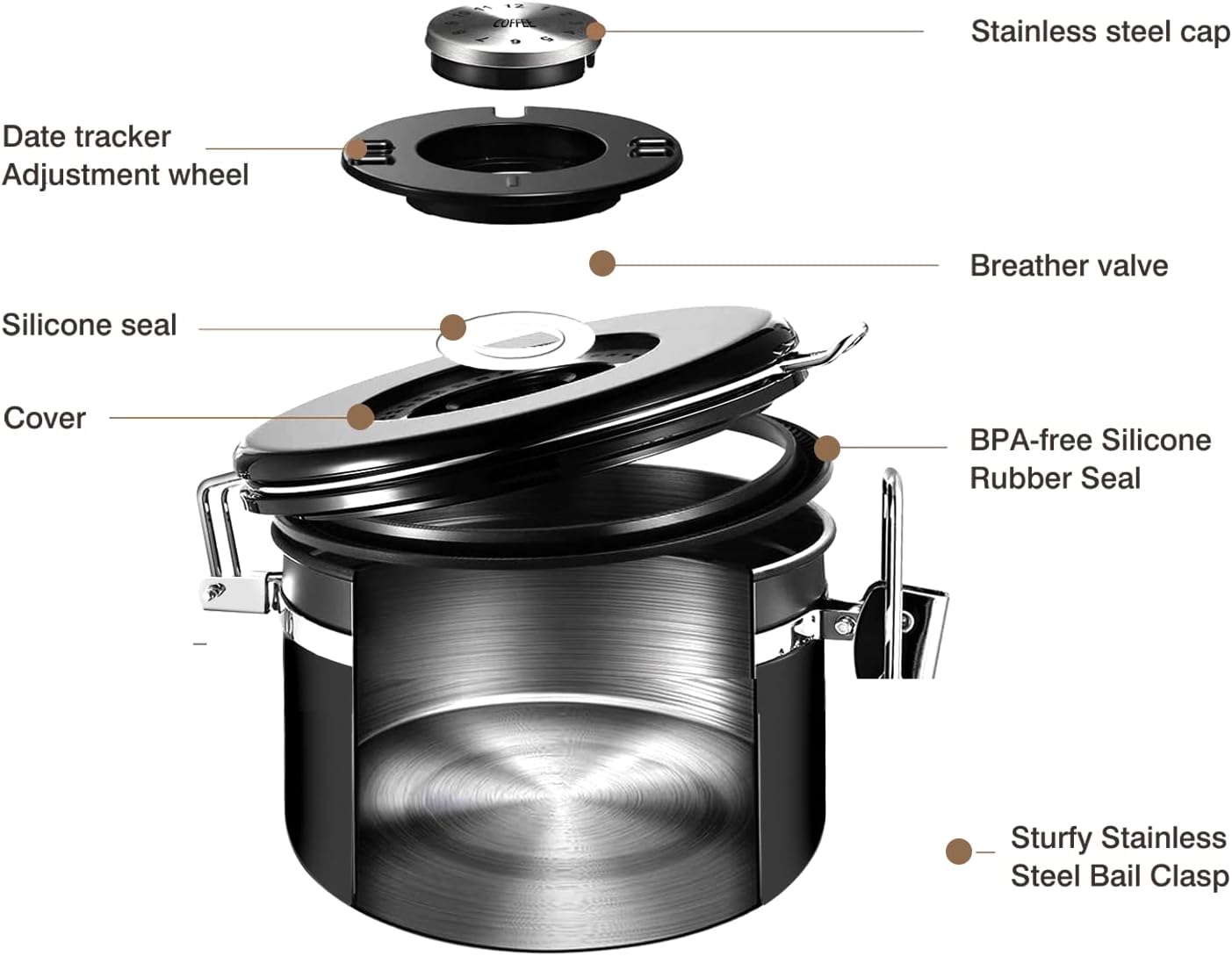 - DATE TRACKER: Use the date tracker on the lid of the coffee can to set the storage or expiration date.This will help you track the freshness of your coffee to prevent expiration and waste and enjoy fresh coffee at the right time