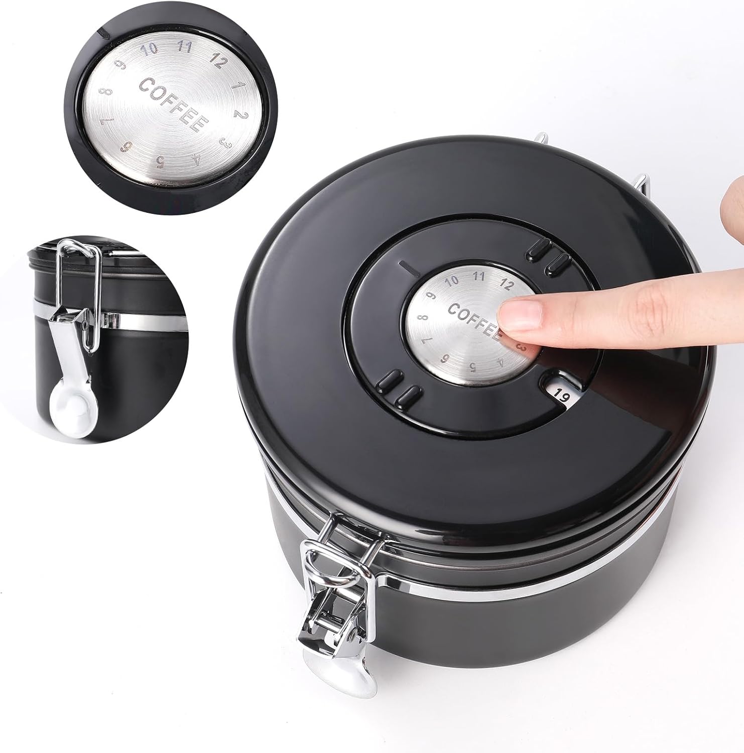 - LONG-LASTING FRESHNESS: Sealed vacuum coffee Canister 22 Ounces is made of high-quality food grade stainless steel 304 with a strong stainless steel buckle.It keeps quality coffee beans or ground coffee fresh for a long time, allowing you to enjoy every bite of coffee you like best.