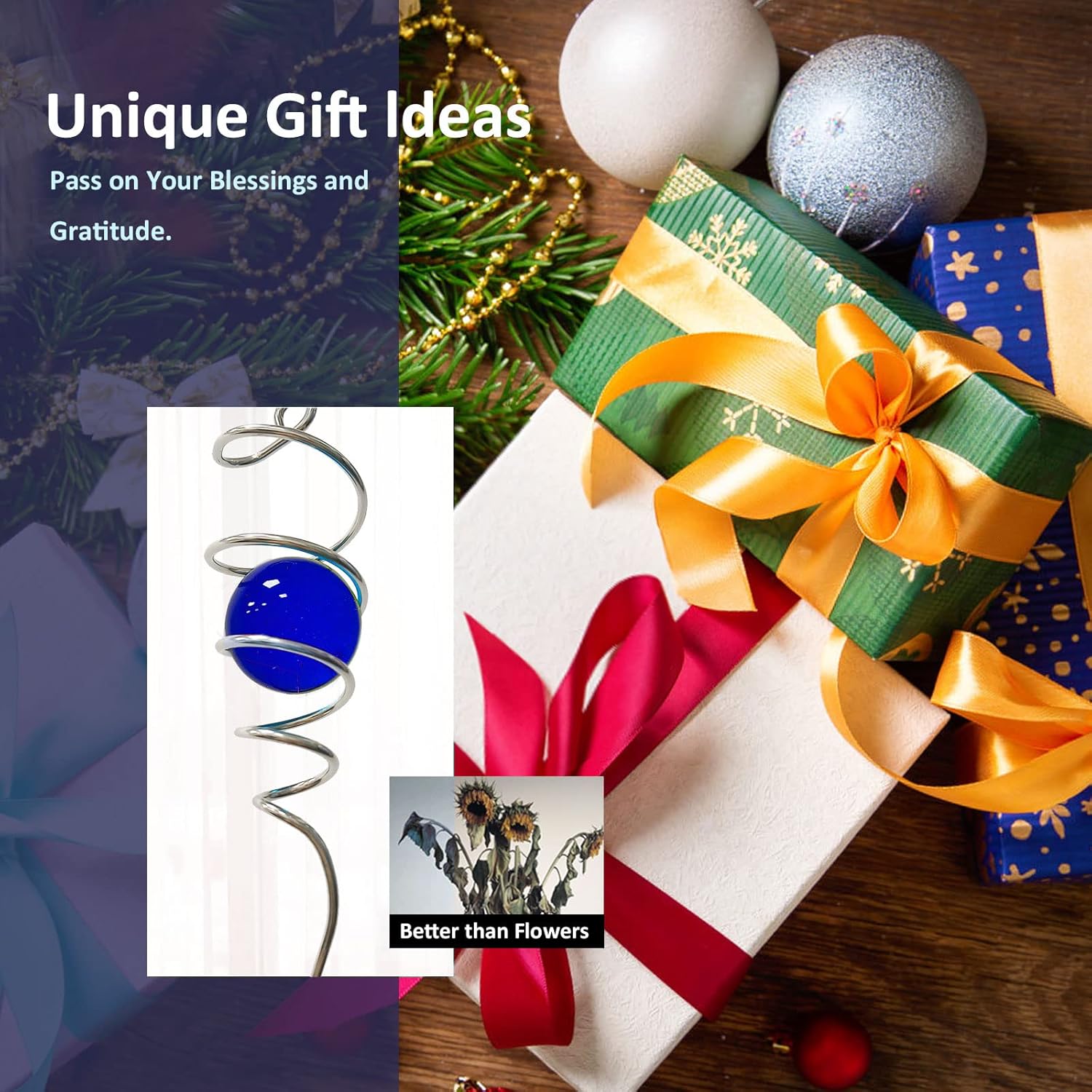 - 【Unique Spiral Design】The gazing ball spiral tail is an unique hanging ornament ,Also it can help to stabilize 3D wind spinners or yard decor from swing when it rotate.When the spiral tail rotates to the left, the glass ball seems to move upwards,when the spiral tail rotates to the right, the glass ball seems to moves downward,the glass ball seems to like floating and dancing in air, presenting a magical optical illusion!