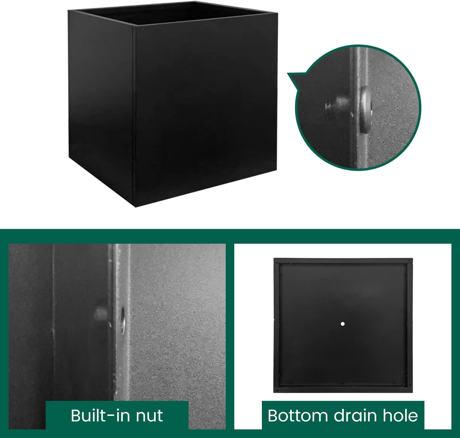 - [ Black Square Planter] Black Square Planter is made of galvanized steel with black powder coating. Black Square Planter is wear-resistant, corrosion-resistant and long lifetime.