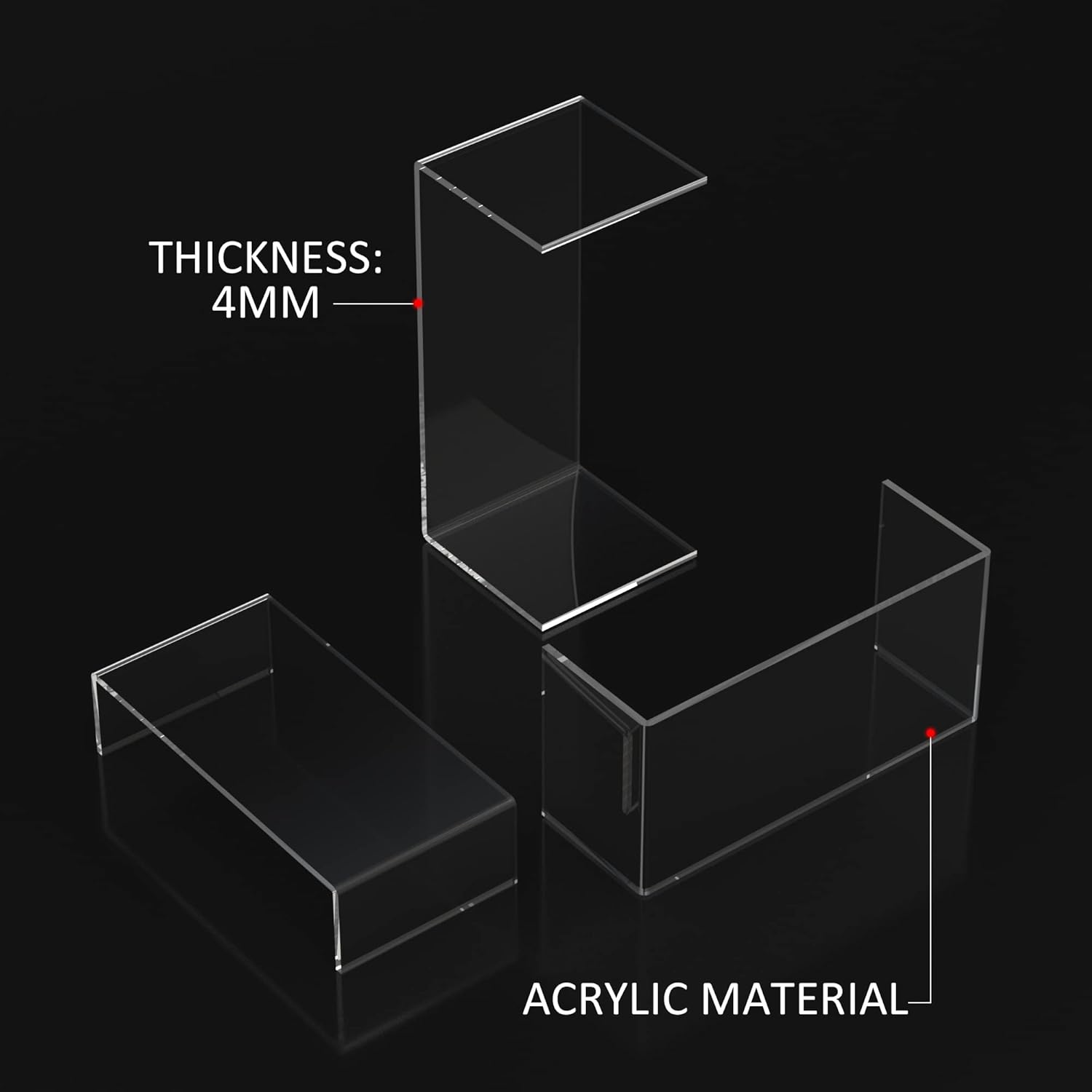 - Crystal Sturdy Acrylic Material: The acrylic risers made in high transparent crystal acrylic material in 4mm thickness, thicker than others(3mm). Unlike other fragile plastic. The acrylic material is very durable and sturdy.