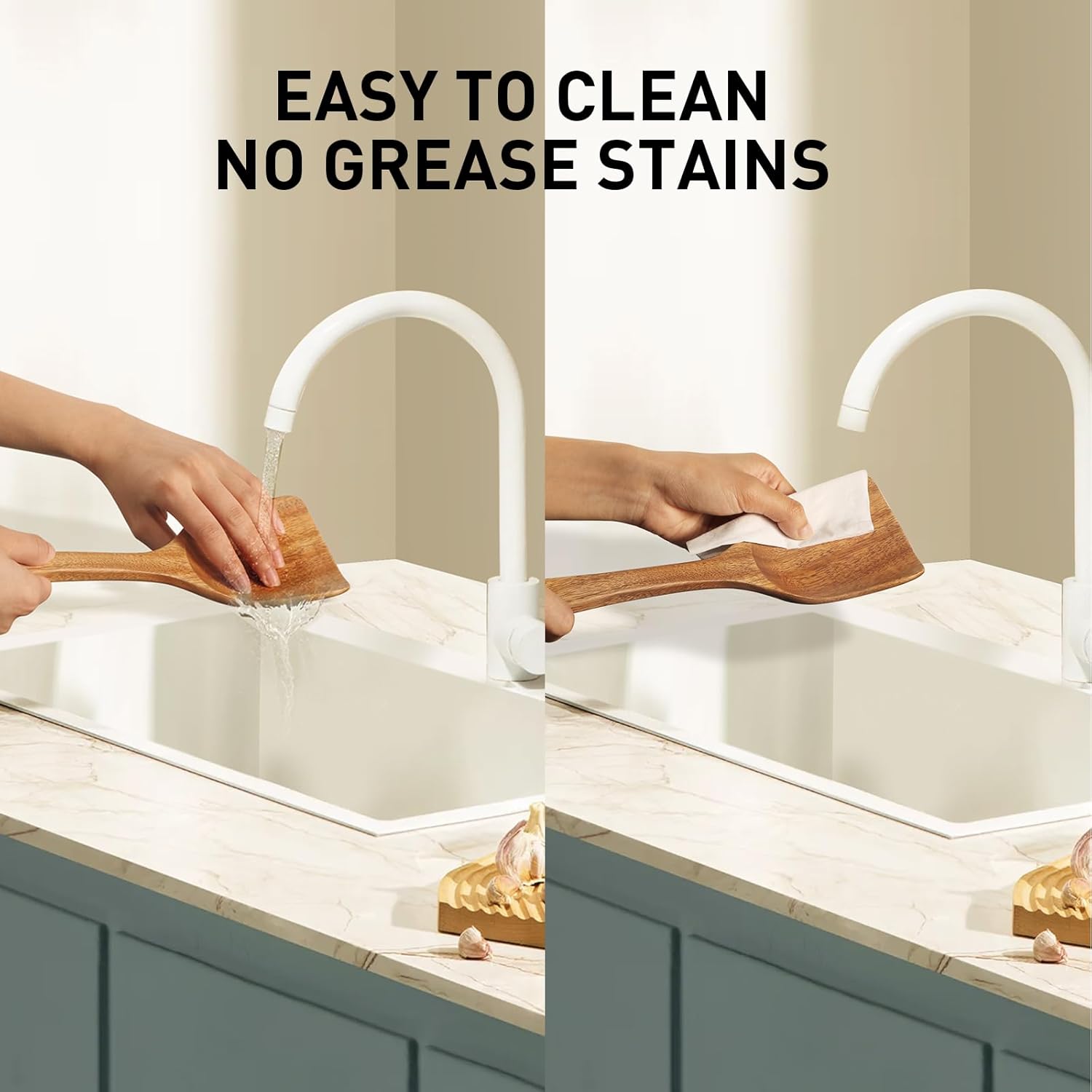 - 【Easy to Clean & Store】The surfaces of all our utensils are smooth without burrs so they won’t damage your cookware. Cleaning is easy with warm water or soapy water. Each tool has holes in the handle allowing it to be hung up on any standard-sized cutlery rack when not being used - providing convenient storage options for busy kitchens that are also stylish