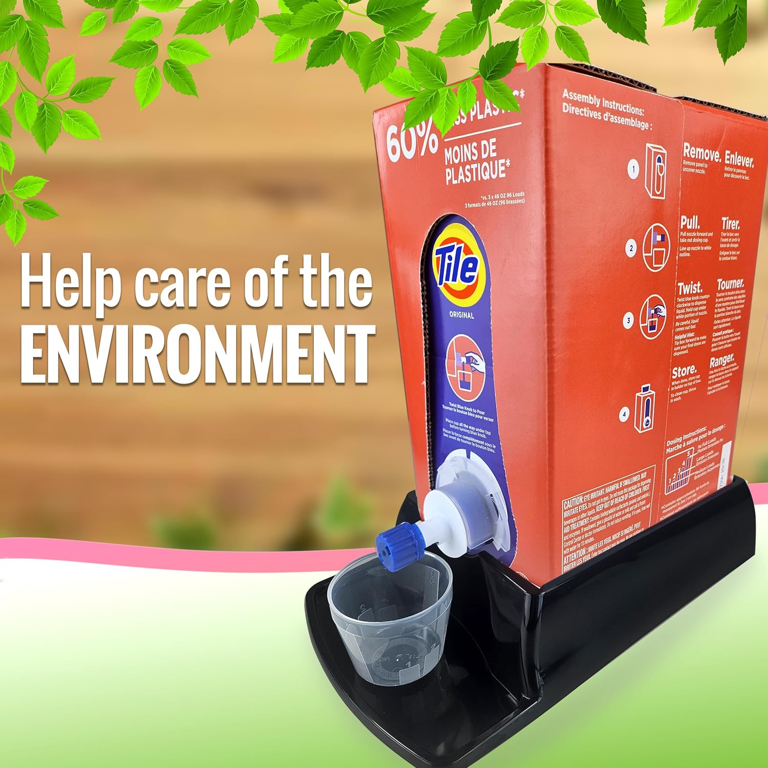 Skywin Laundry Detergent Holder For Eco Box Laundry Soap Dispenser - with Easy-to-Store Package - Less Plastic Liquid Detergent Dispenser (Black)