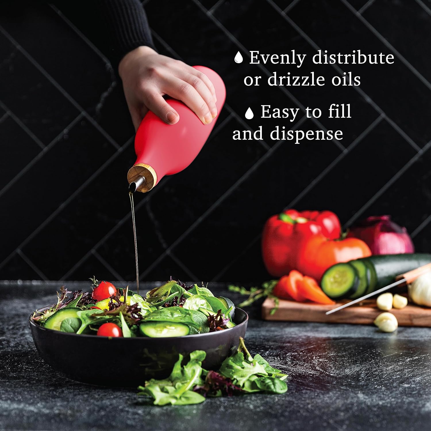 - CONTROLLED POURr: The cruet spout on this olive oil dispenser provides a controlled pour for easy use at the counter or stove, while still adding a touch of elegance to any table setting. The drip-free design ensures that you can easily pour the perfect amount without any mess.