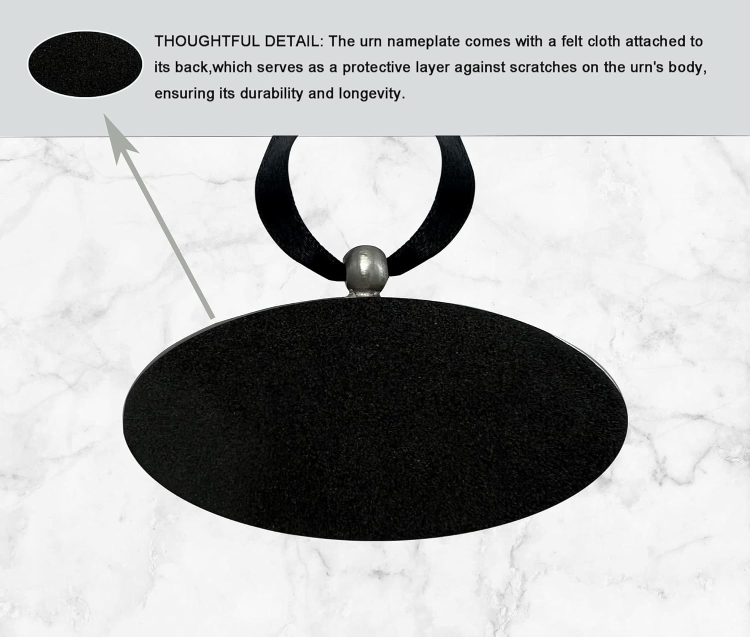 - The back of the nameplate features a soft velvet material that protects the urn from scratches. It comes with an elegant gift box that ensures the nameplate remains safe and secure during transport or storage.