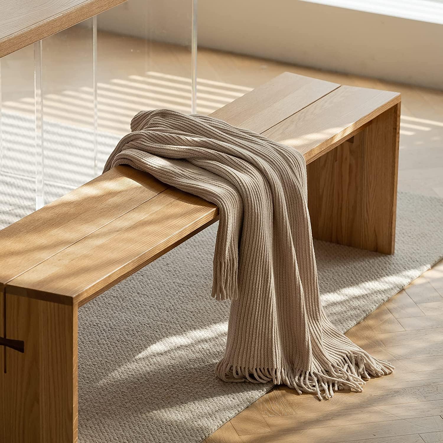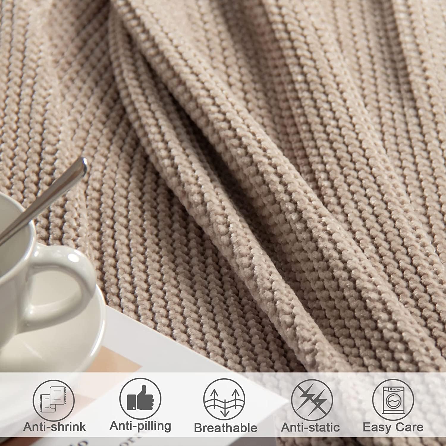 lifein Throw Blanket for Couch, Soft Boho Decor Bed Throw,Cozy Beige Knitted Chenille Small Farmhouse Lightweight Throw for Spring(Beige,60 * 80")