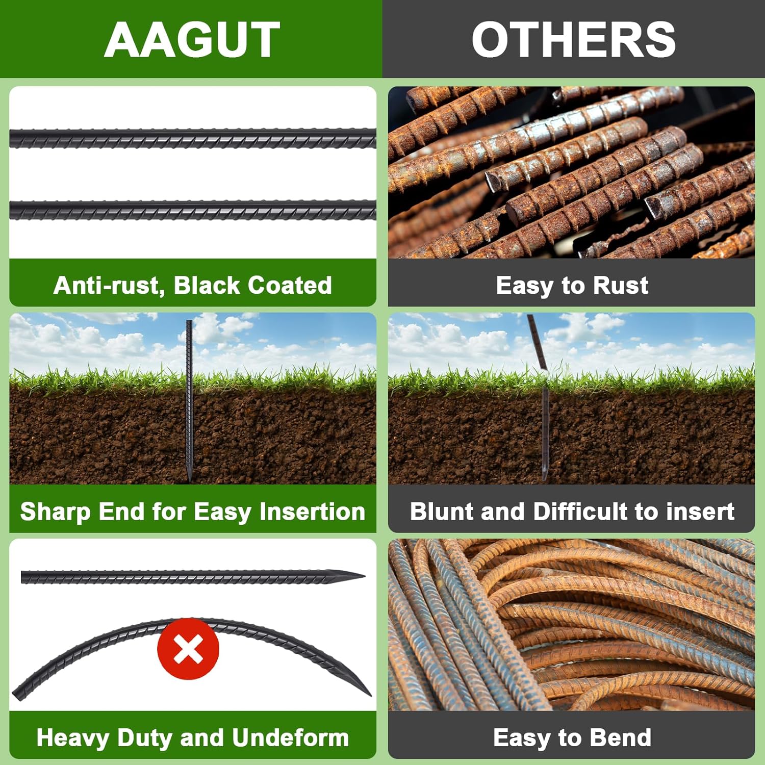 AAGUT Rebar Stakes 24 Inch 10 Pcs Landscape Timber Spikes 1/2", Heavy Duty Straight Garden Plant Stakes for Concrete Forming, Ground Anchors with Chisel Point End, Black
