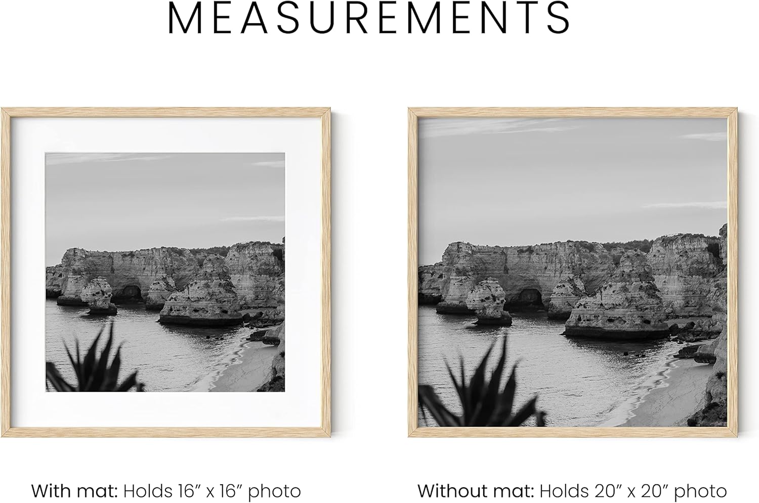 - WOOD PICTURE FRAMES WITH MAT: The 20 x 20 matted wood frames showcase the detail of the oak wood, with its unique grain patterns and rich hues. Our picture frame with mat will enhance your photographs and artwork, while the durable construction ensures your memories are exhibited for years to come. Embrace the seamless blend of natural materials and contemporary design with our large wood picture frames, bringing a touch of modernity to your cherished moments