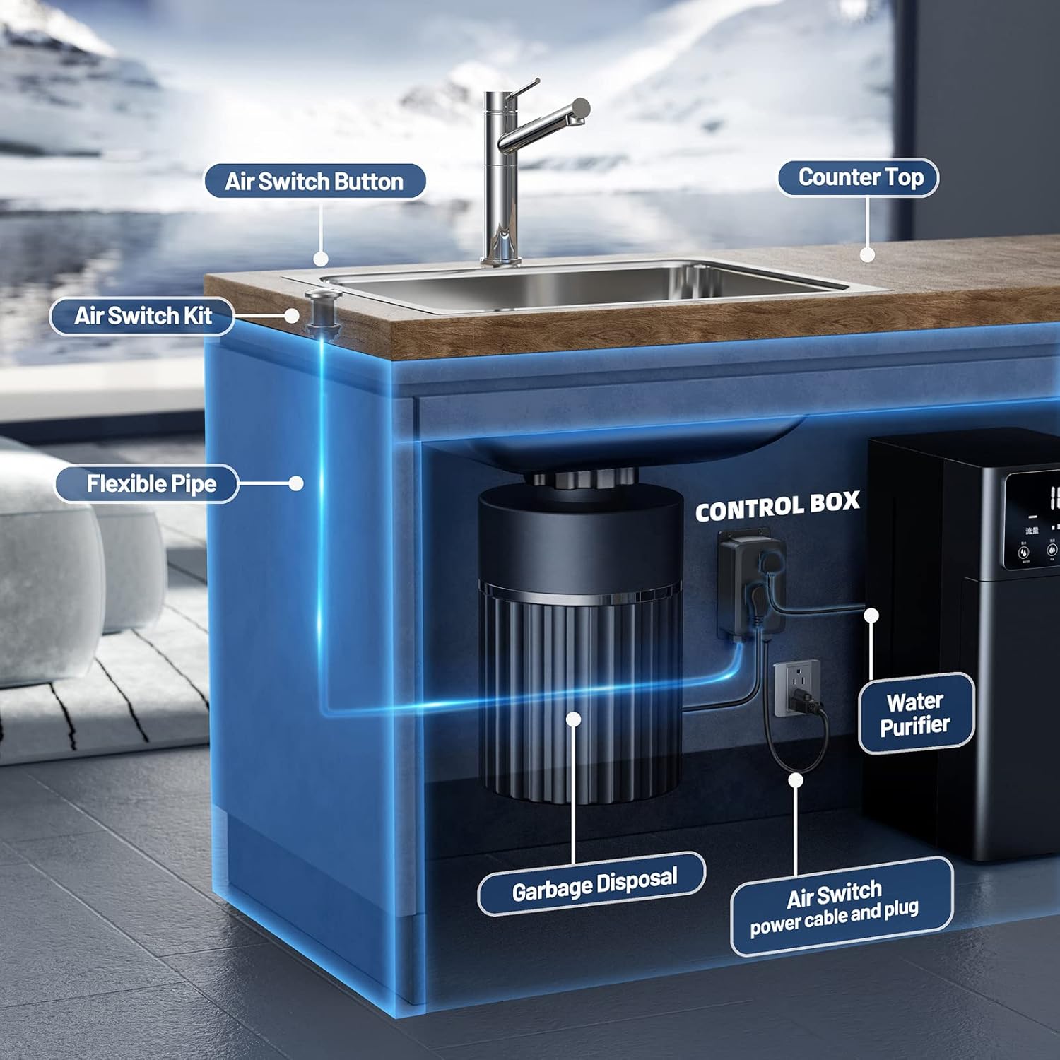 - 【Dual Outlet Design – Power Two Devices at Once】Equipped with two independent outlets, including one always-on socket, allowing you to connect additional appliances such as a water purifier or dishwasher. Enjoy a cleaner, more efficient kitchen setup with fewer cords and clutter.