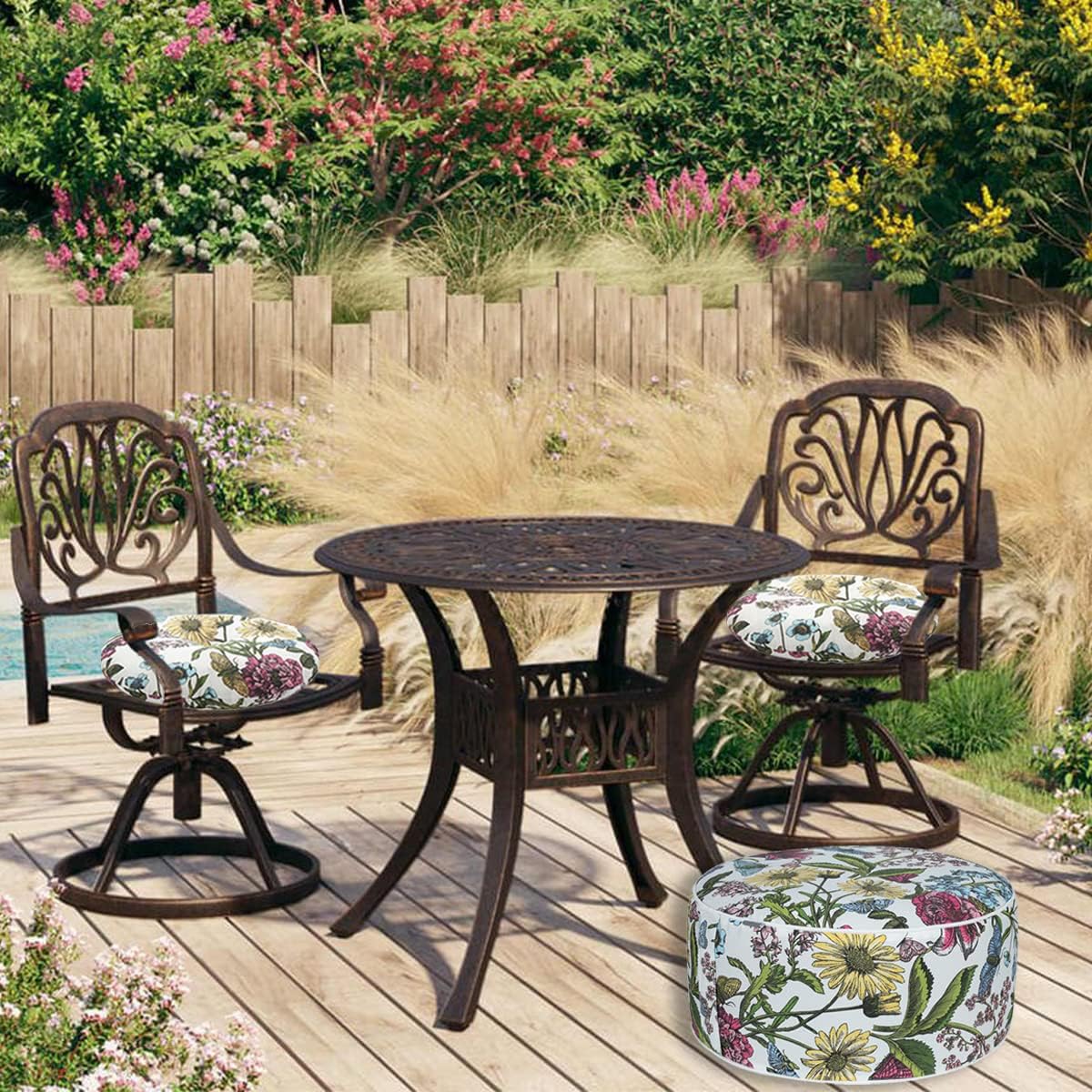 FUNHOME Inflatable Outdoor Ottoman with Air Pump,20"x9" Portable Patio Pouf,Water Resistant,Fade-Resistant,Round Blow Up Footrest Stools for Home Garden Camping Travel(Butterfly Flower)