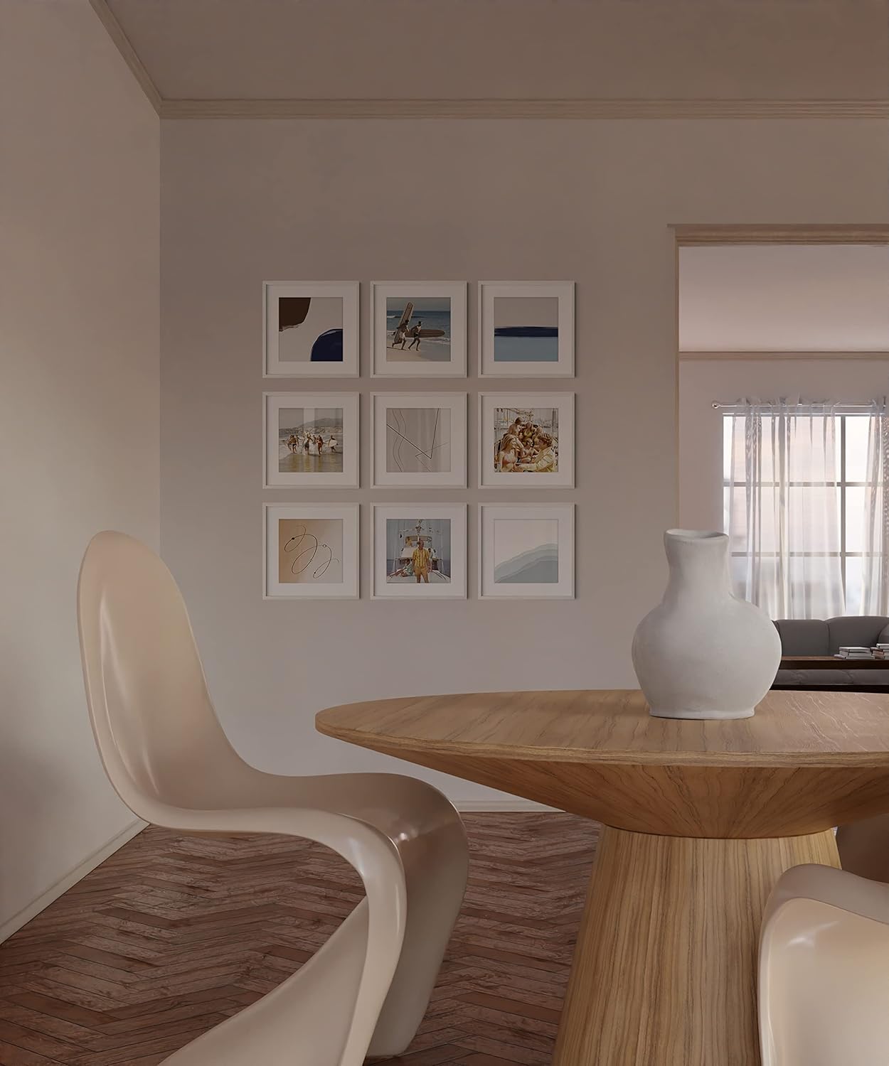 - WALL FRAMES COLLAGE SET: Indulge in the beauty of these 16x16 frames, meticulously crafted from premium oak wood and enveloped in a pure white frame and mat. This wooden frames wall gallery frame set offers a stunning canvas to display memories