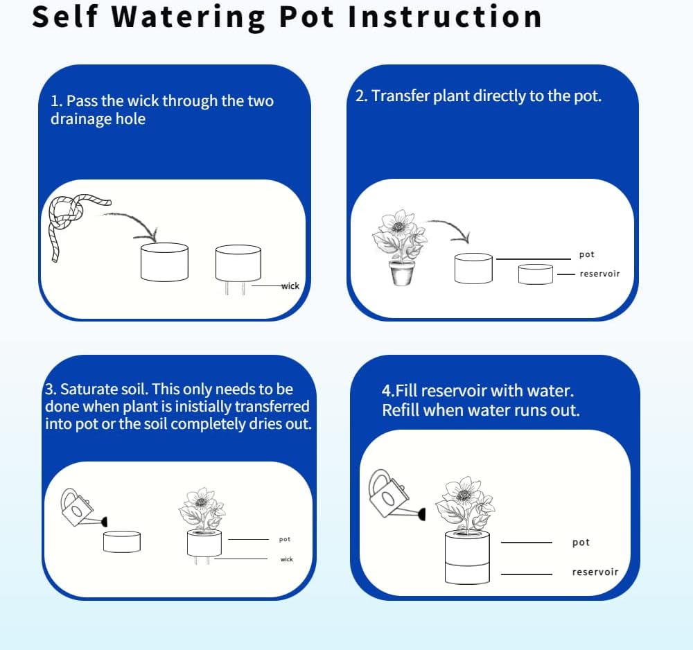 - Designed to save both time and money, this accessory comes with a wick, mesh, and rubber plug to provide the optimal watering solution for your plants. Self-Watering ensures even distribution of moisture throughout the pot.