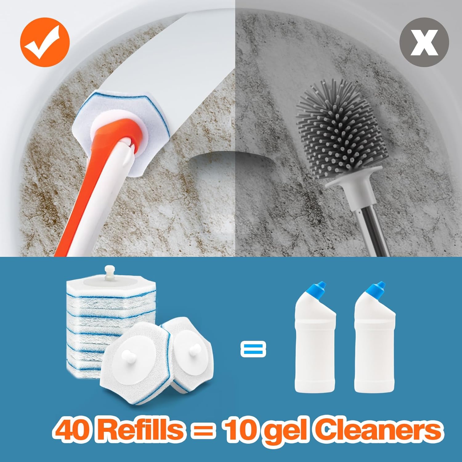 - 40 Pcs Disposable Cleaning Refills: The disposable toilet brush cleaner comes with 40 refills, which equals with 10 gel cleaners. Itโs super cost-effective and can use for more than 2 months for a normal family
