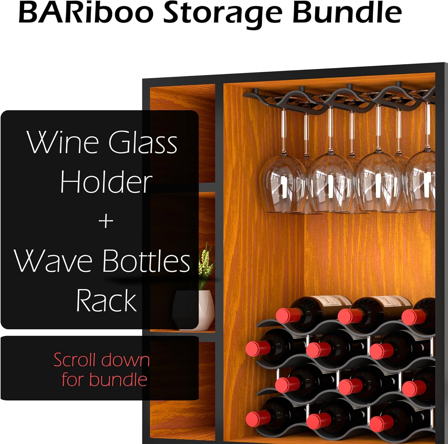Bariboo Wine Glass Storage Case – Hang 8-12 Glasses on Your 18.7 x 9 x 1.7 In., Dust-Free Wine Glass Holder – Under-Shelf & Under-Cabinet Wine Glass Holder Rack with Assembly Manual & Video
