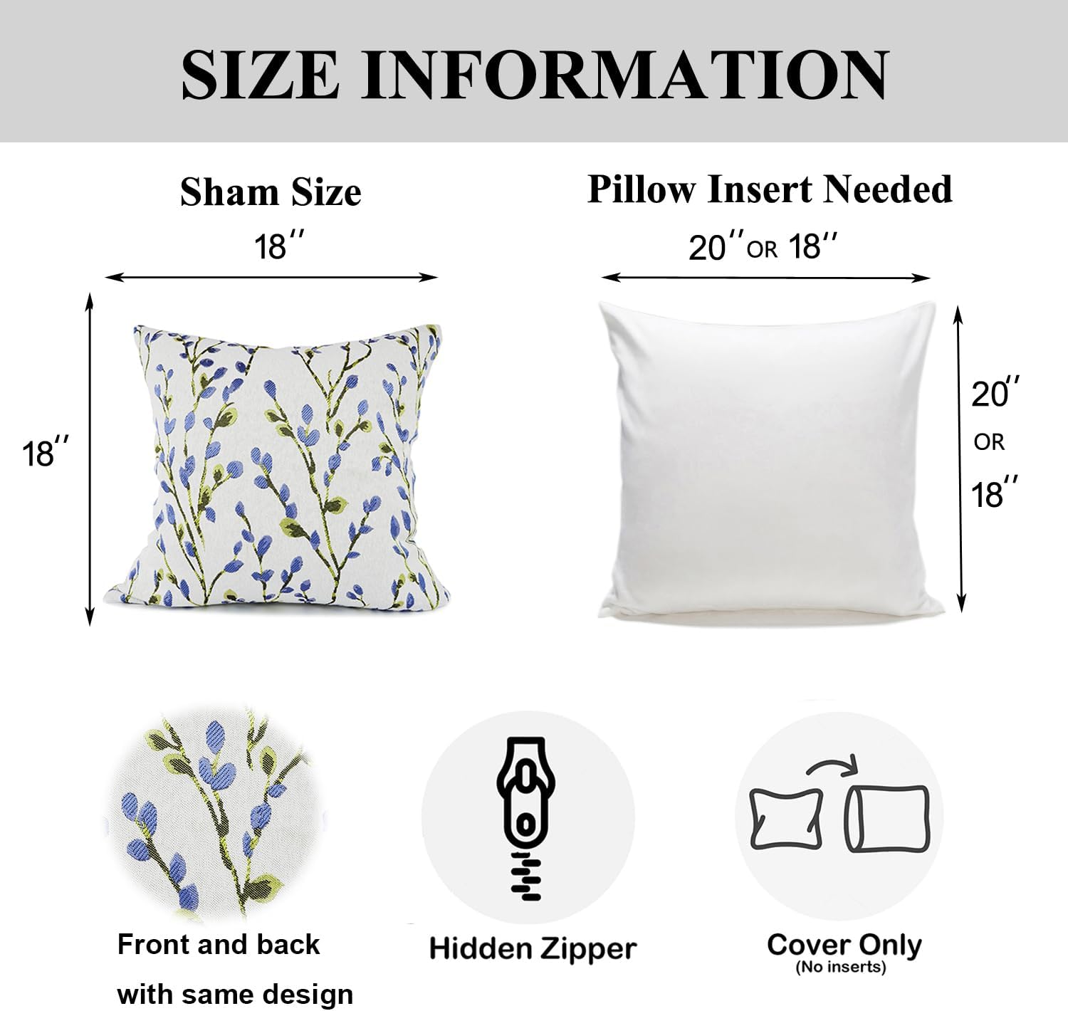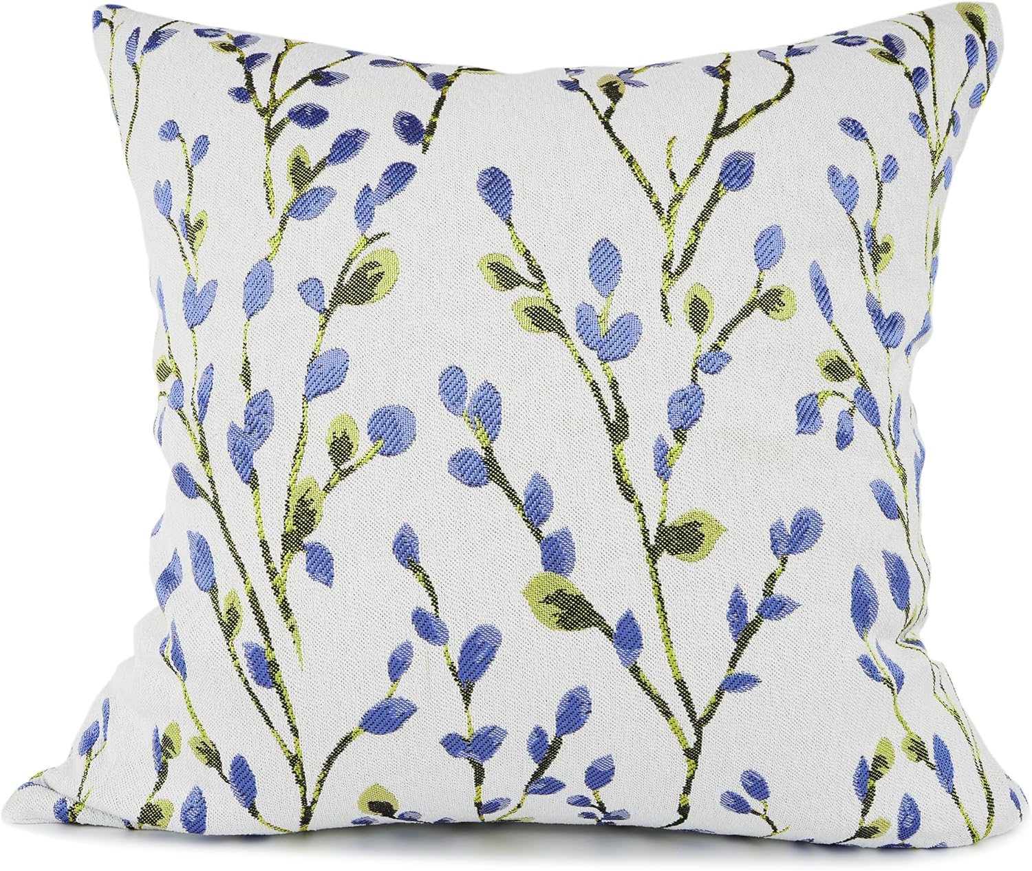 YOUR SMILE Classical Embroidery Jacquard Blue Square Decorative Throw Pillow Case Cushion Cover 18x18 inch