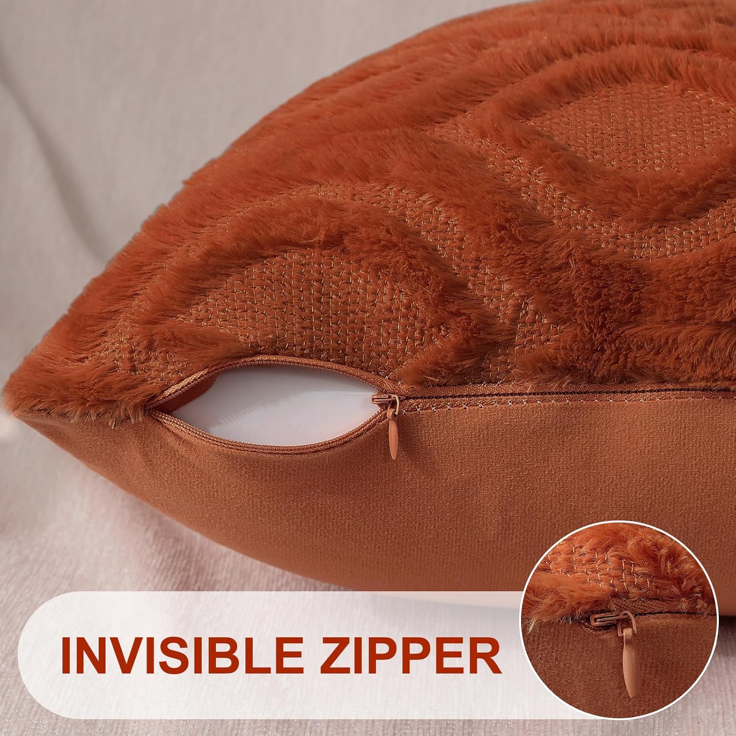 decorUhome Fall Throw Pillow Covers 22x22 Inch Set of 2, Soft Plush Decorative Faux Fur Rust Solid Couch Pillow Covers, Accent Farmhouse Neutral Square Euro Pillow Cases for Sofa Bed Living Room