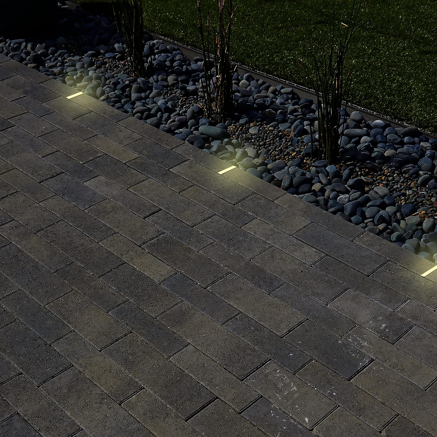 - Stunning Design - The Lumengy Paver Lane series has a super slim 0.5x6 (0.55 x 5.9 inches - 14x150mm) size, perfect for a thin linear highlight between pavers. Its design adds sophistication and elegance to your outdoor space, while the glare-free effect and warm ambient light provide safety and comfort.