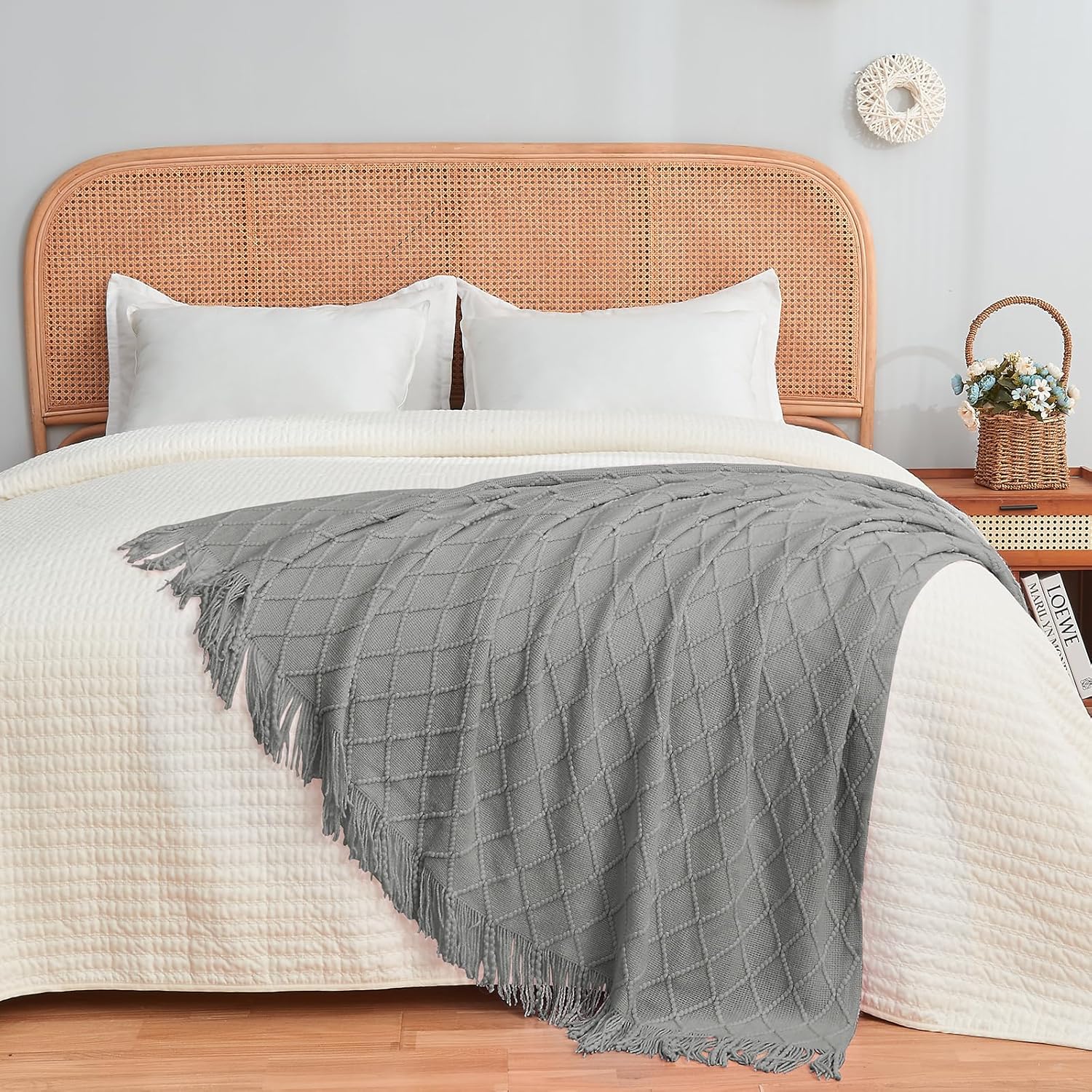 inhand Knitted Throw Blankets for Couch and Bed, Soft Cozy Knit Blanket with Tassel, Light Grey Lightweight Decorative Blankets and Throws, Farmhouse Warm Woven Blanket for Men and Women, 50"x60"