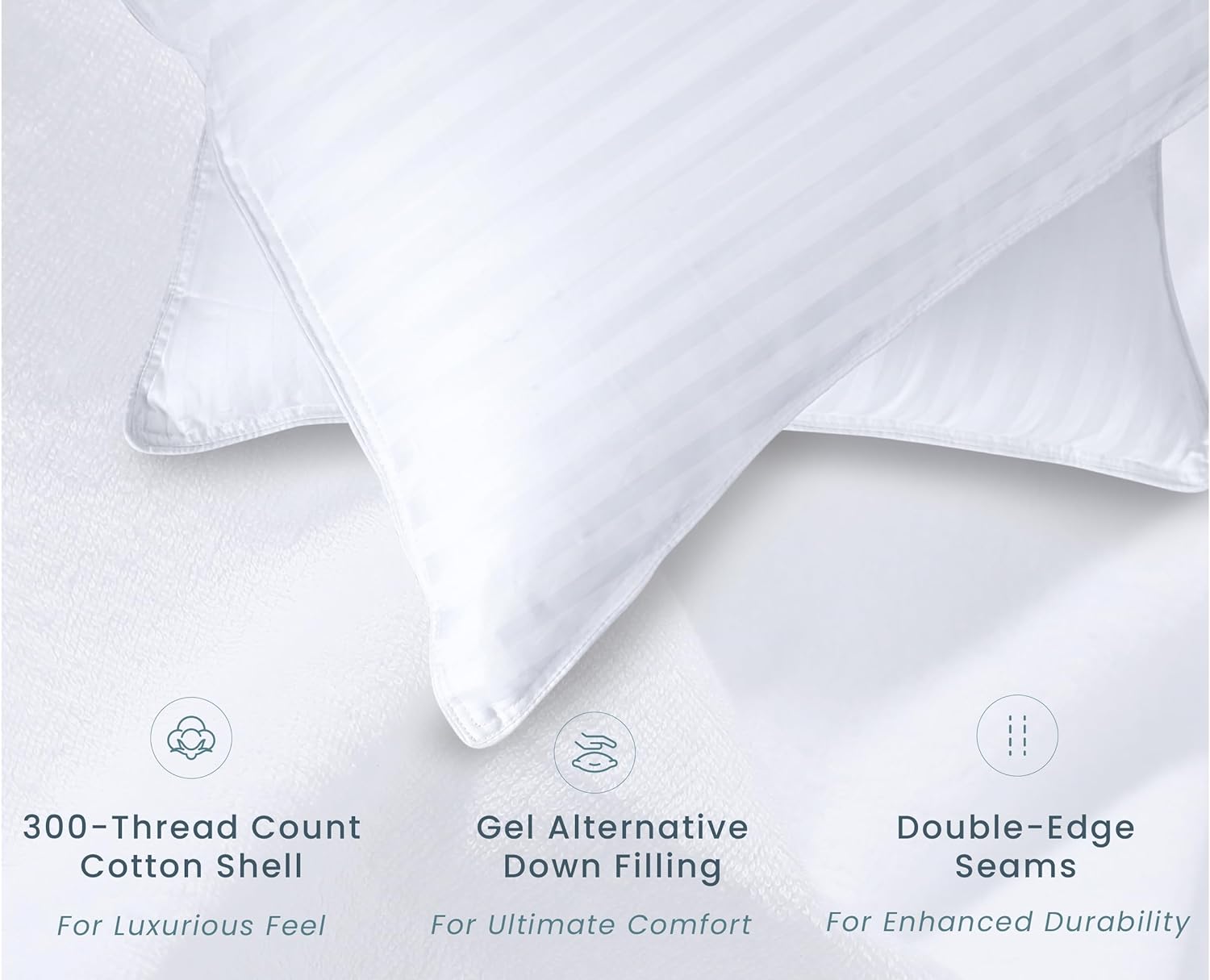 - Superior Comfort: Filled with a soft down alternative and encased in a 300-thread count cotton cover, these pillows provide ultimate comfort for all sleeping positions—back, side, or stomach sleepers.