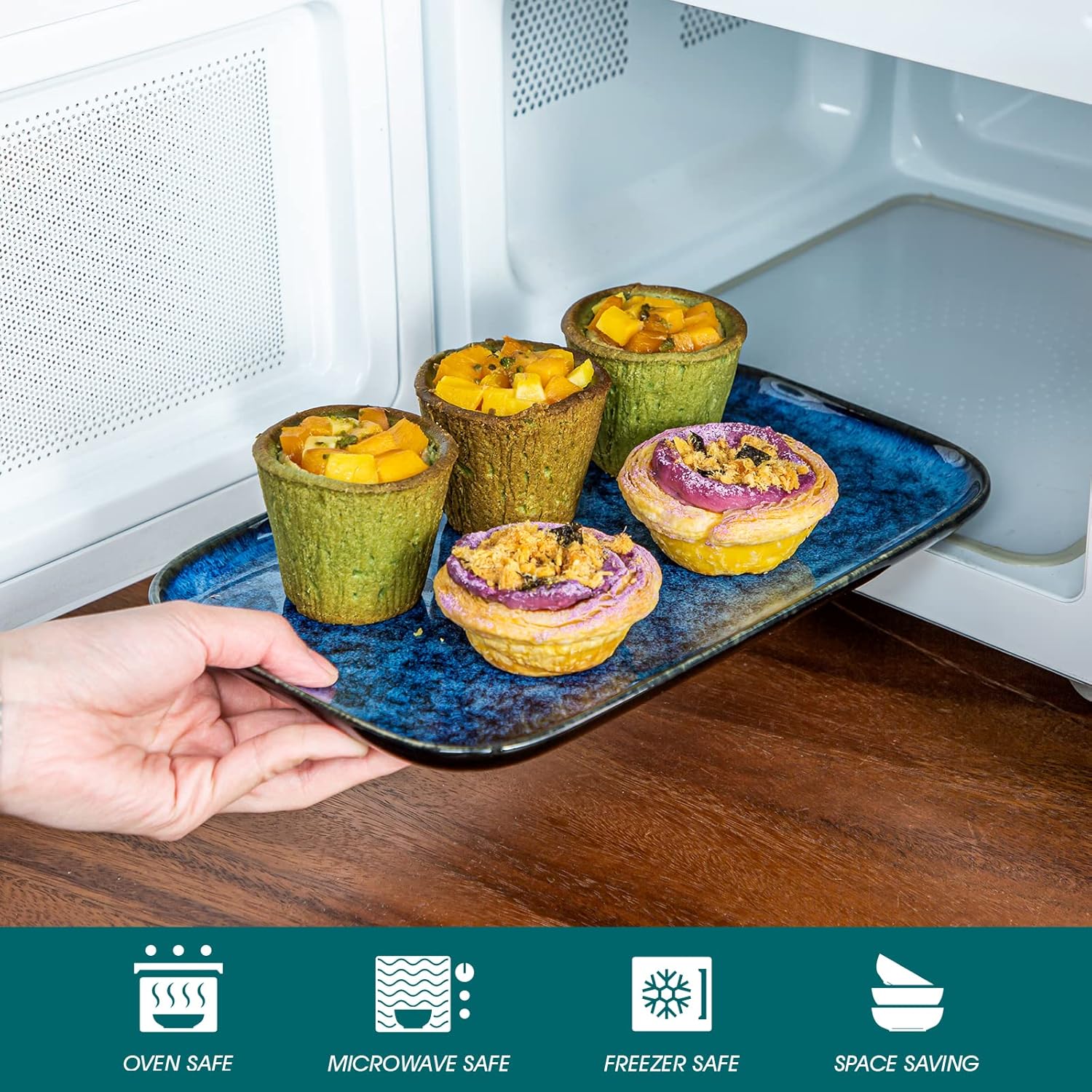 - 【Safe & Healthy】Healthy stoneware, Non-Toxic, Lead and Cadmium free. Will be no chemical reaction with the food, and won’t transfer of odors, colors, or flavors between uses. Perfectly compatible with cold & hot food without worry about chips, nicks, cracks, and scratches.