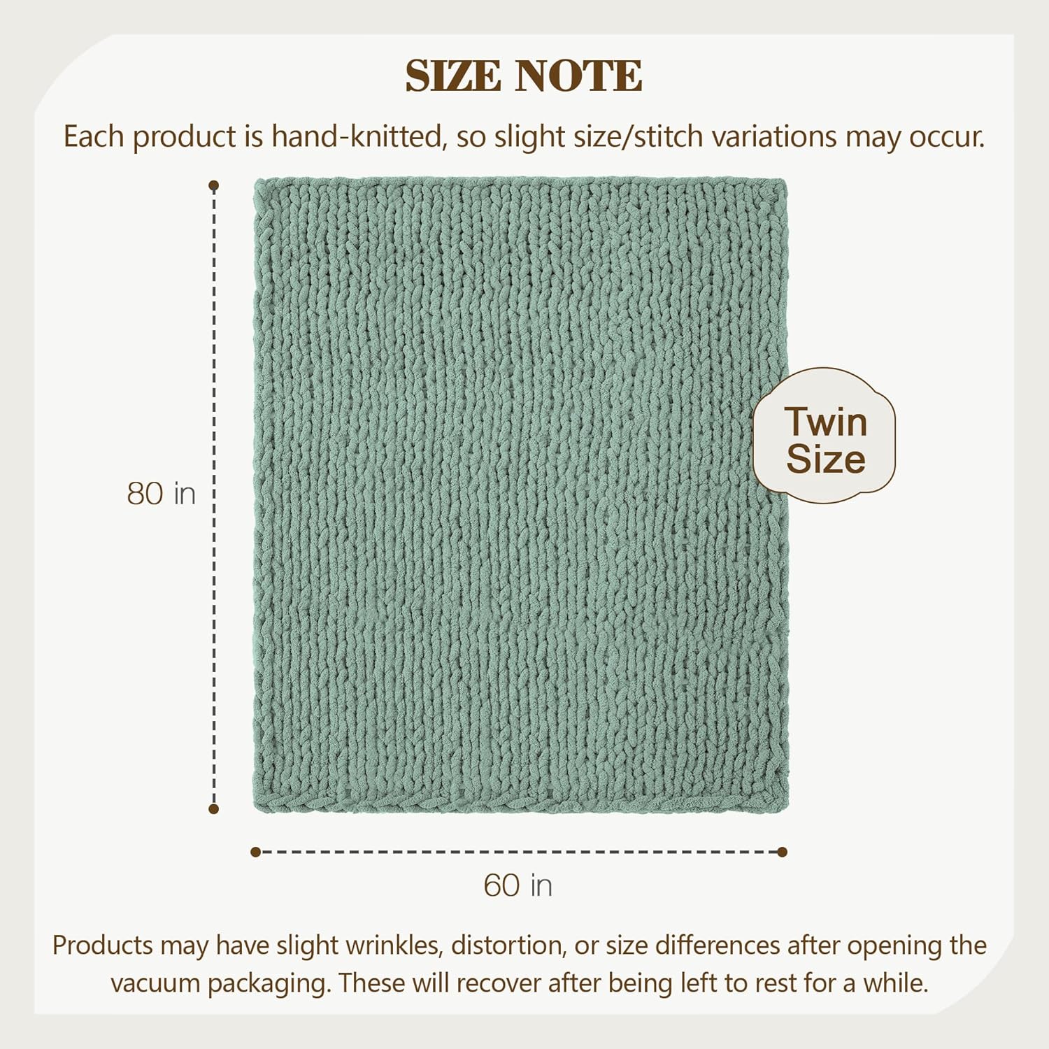 Carriediosa Chunky Knit Throw Blanket 60" X 80" Twin, 100% Hand Made Large Chenille Loop Yarn Soft Fluffy Throws for Couch Sofa Bed, Big Crochet Cozy Heavy Thick Cable Woven Blankets, Sage Green