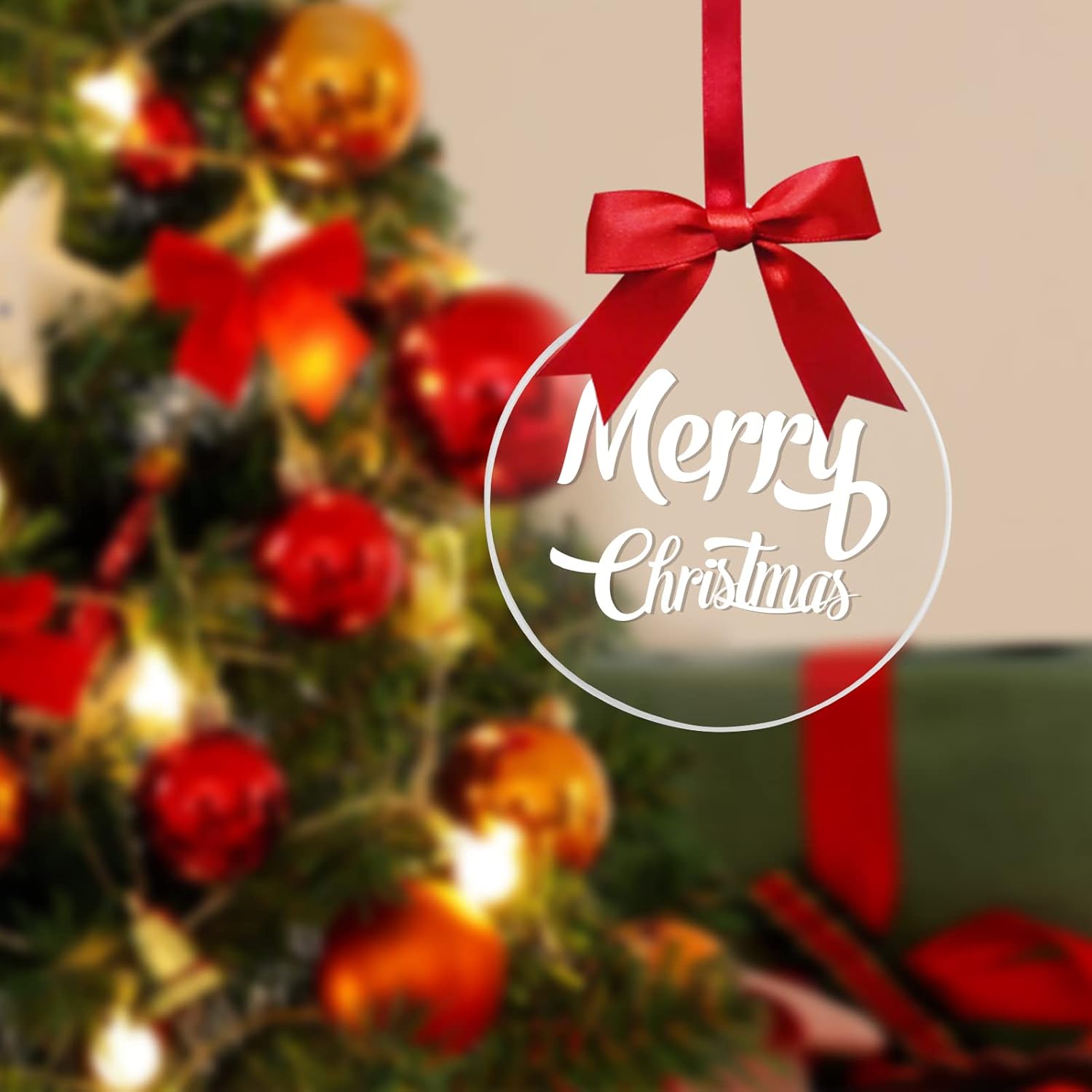 - Transparent Christmas ornament with protective layers on both sides to prevent scratches or dirt before use