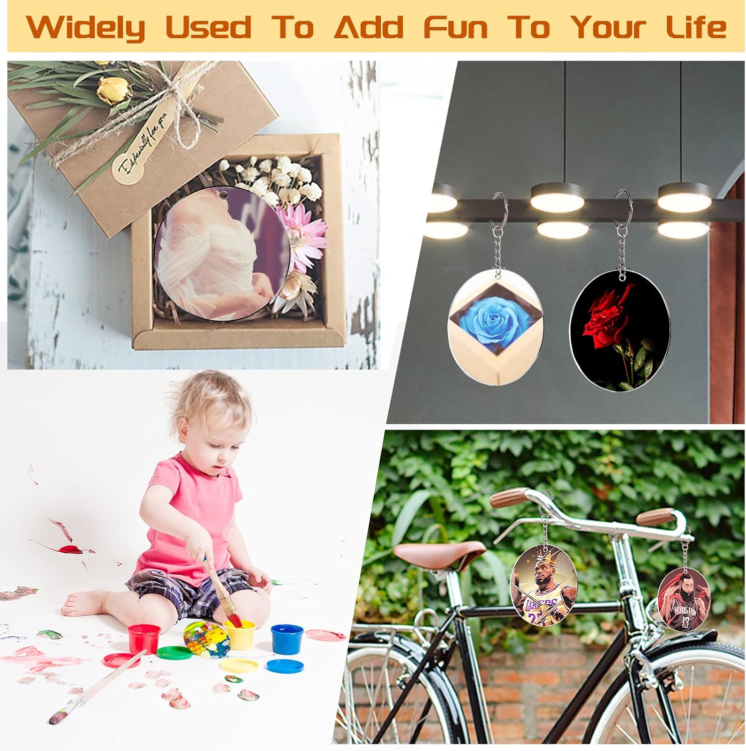 - Round acrylic blank sheets have a wide range of uses, including engraving picture frames, painting, cutting, making wedding and party signs, souvenirs, key chains, coasters, labels, holiday decorations, and many other DIY art and craft projects