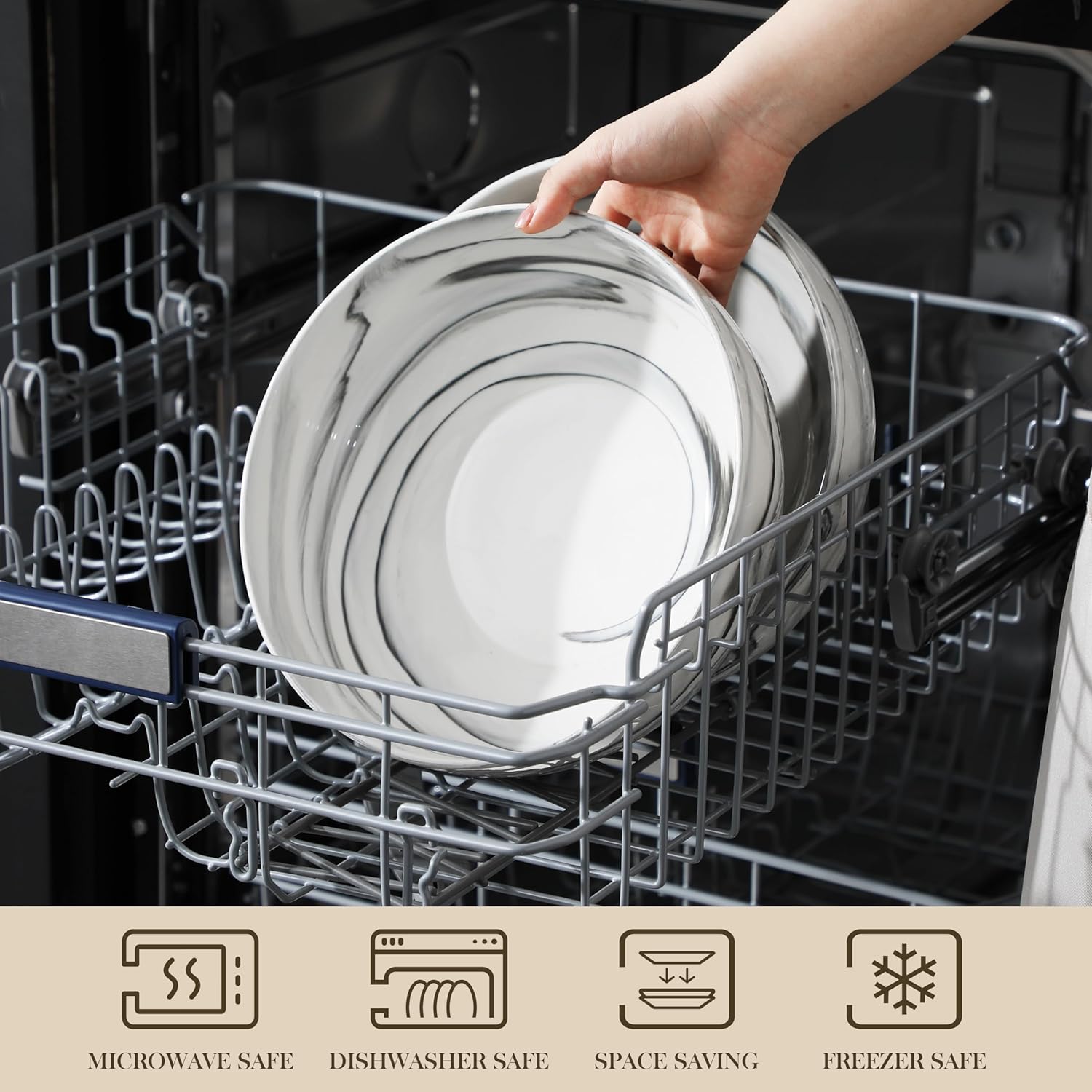 MALACASA Salad Bowls, 114 OZ(10") Extra Large Serving Bowls Set of 2, Porcelain Marble Grey Bowls Set for Soup, Salad, Ramen and Fruit, Dishwasher& Microwave Safe, Series REGULAR