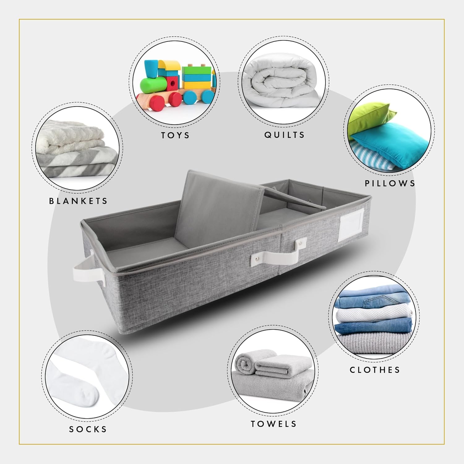 - 𝟑𝟎𝟎𝐃 𝐂𝐚𝐭𝐢𝐨𝐧𝐢𝐜 𝐂𝐥𝐨𝐭𝐡 𝐌𝐚𝐭𝐞𝐫𝐢𝐚𝐥: Made from premium quality fabric, our 23.5x12.5x5" Under Bed Storage Containers With Lids are durable, sturdy, & carefully designed to hold large quantities of clothes, blankets, shoes, & various bed accessories. These under bed storage dorm drawers are designed to fit perfectly under your bed for efficient bed room organization and storage, making it an under bed organizer that will easily blend into your home's aesthetic style.