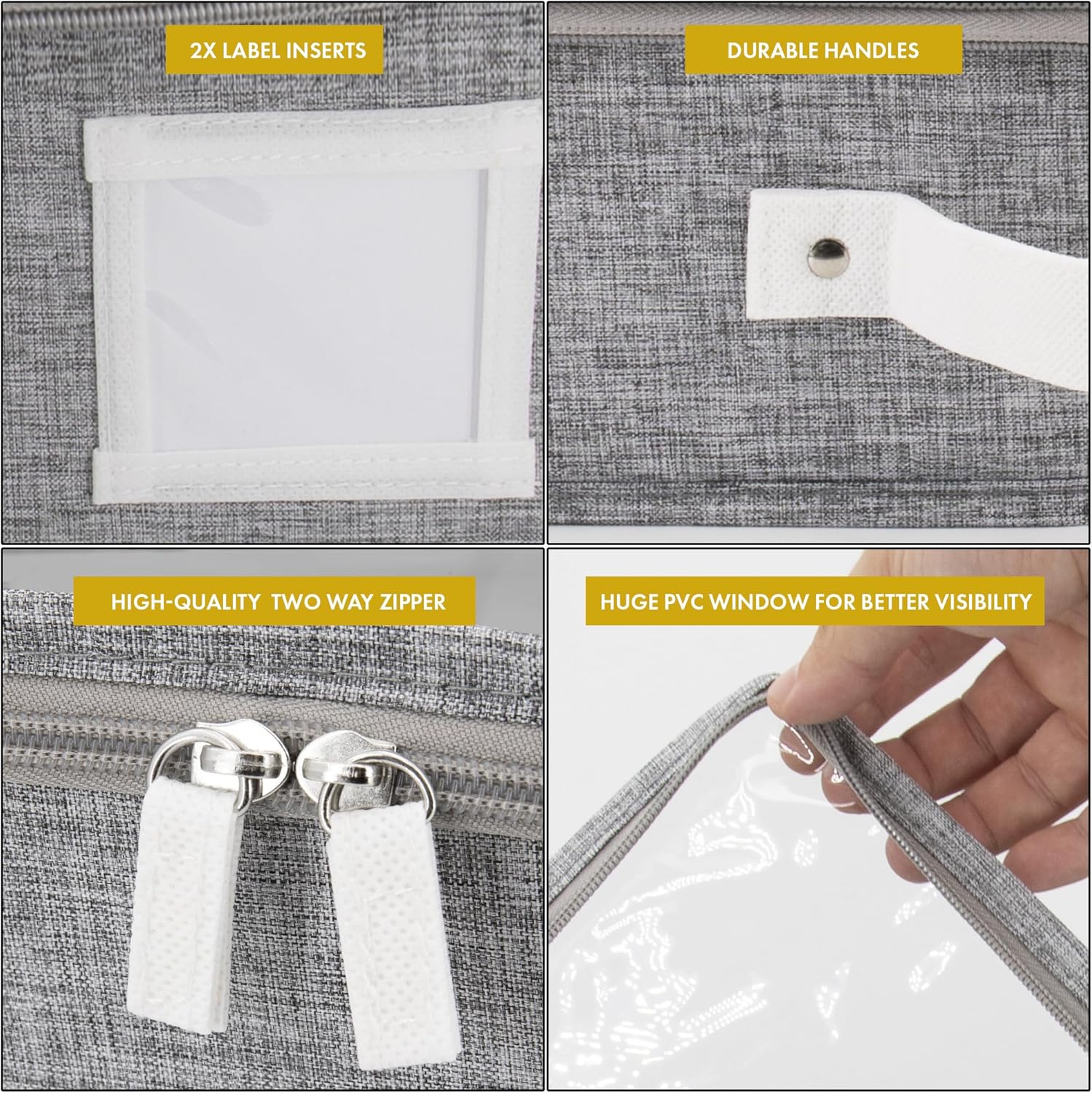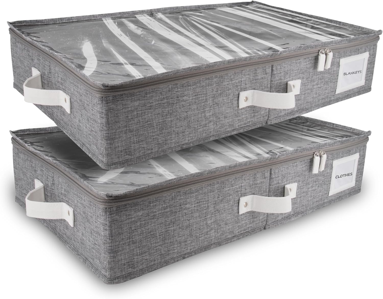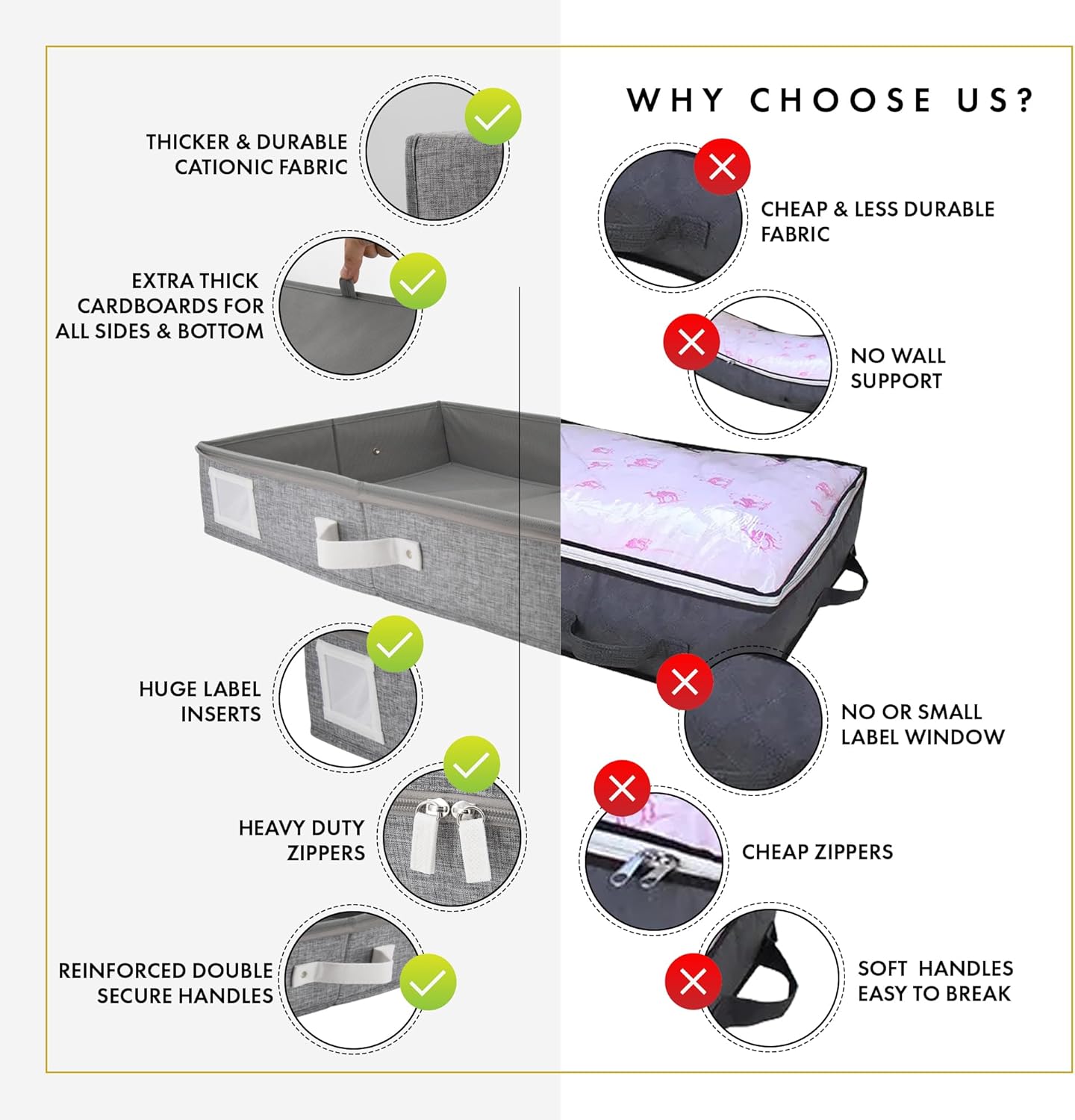 - 𝐇𝐞𝐚𝐯𝐲 𝐃𝐮𝐭𝐲 𝐙𝐢𝐩𝐩𝐞𝐫 𝐂𝐥𝐨𝐬𝐮𝐫𝐞: Committed to safety and organization, our under bed flat storage boxes are precisely tailored. The zipper of our storage containers for under the bed ensures that the items inside are protected from dust and other elements that can cause damage. Our under bed storage with lid are pusposely designed with durability and strength making it ideal for flat clothing storage that require frequent opening and closing, or those that carry heavy loads.