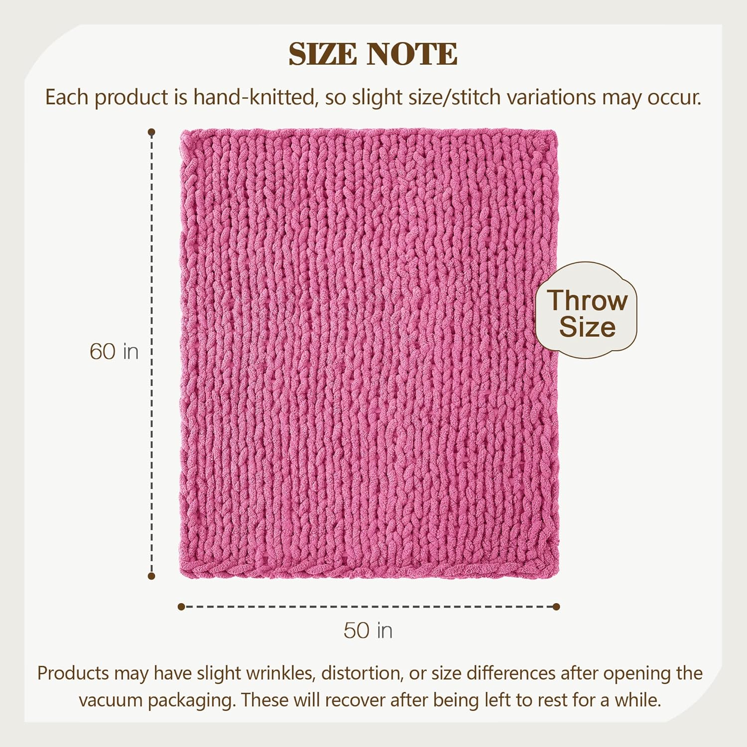 Carriediosa Chunky Knit Throw Blanket 50" X 60", 100% Hand Made Large Chenille Loop Yarn Soft Fluffy Throws for Couch Sofa Bed, Big Crochet Cozy Heavy Thick Cable Woven Blankets, Hot Pink