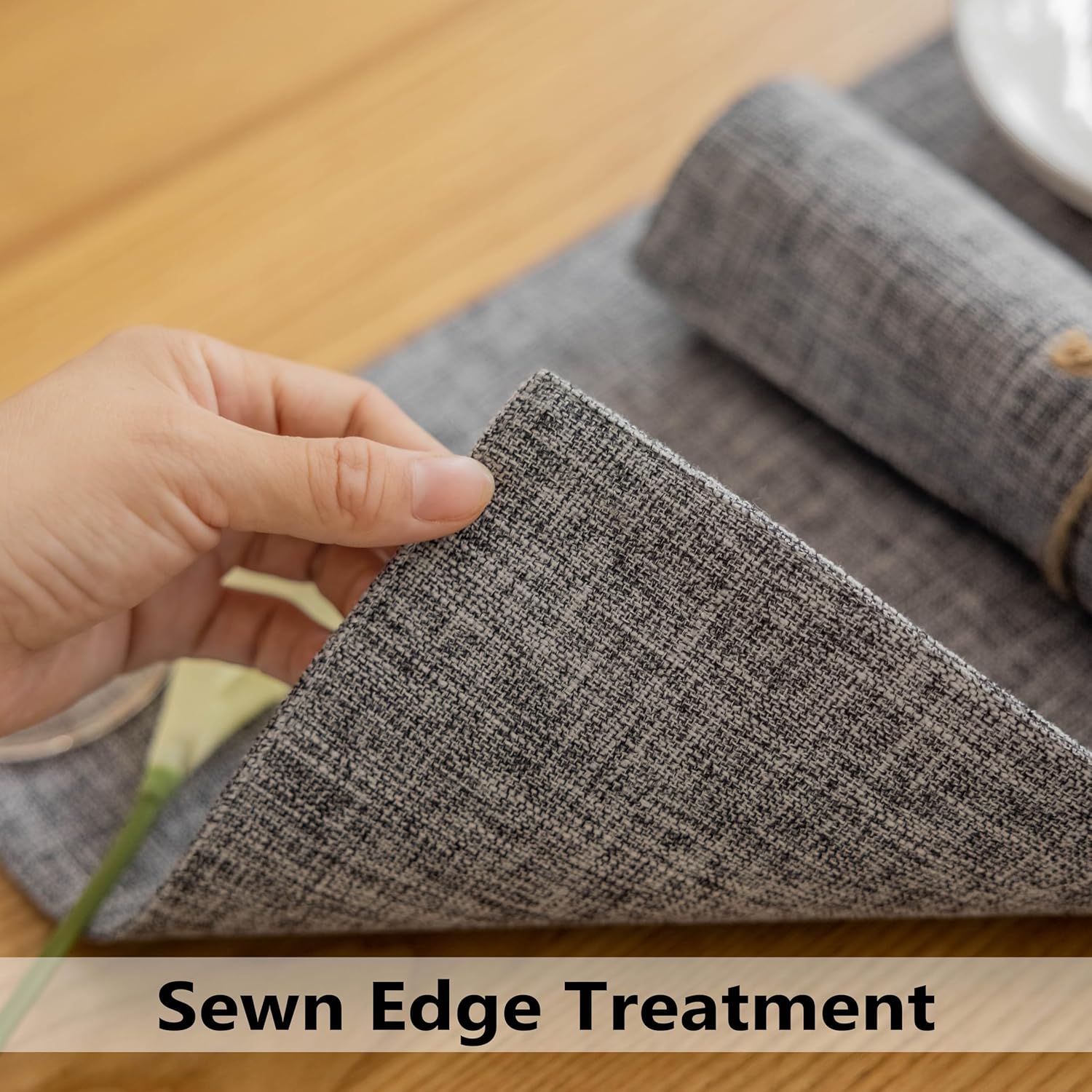 Demetex Grey Placemats Set of 4 Farmhouse Heat Resistant Linen Table Place Mats Washable Cloth Plate Mats for Party Picnic Buffet, Ash Grey