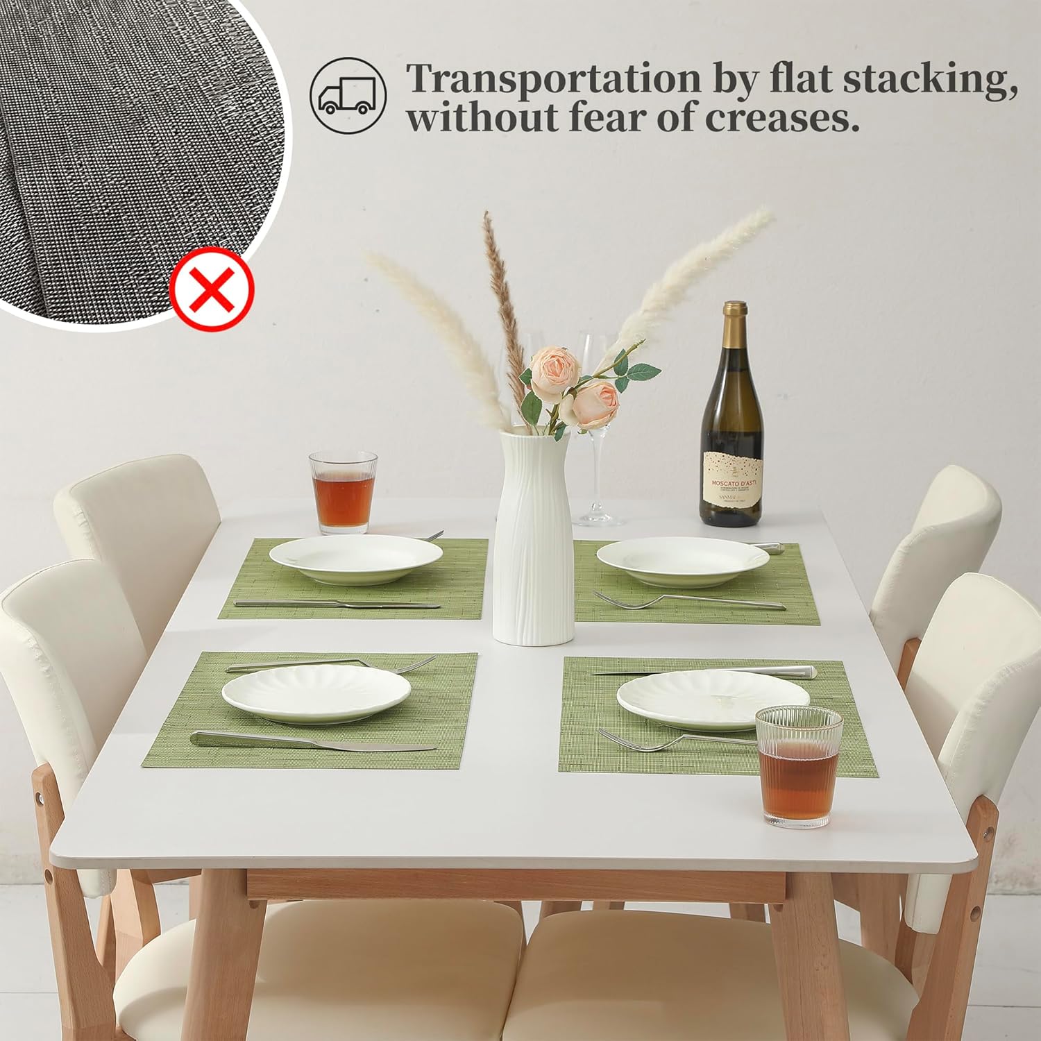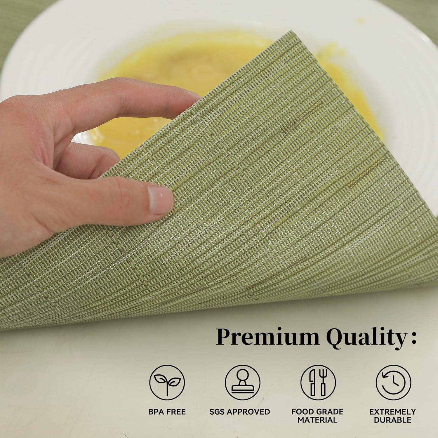 Leetaltree Pea Green Placemats Set of 8 - Heat Resistant Non-Slip Place mats for Dining Table, Washable Durable PVC Vinyl Woven Table Mats(Pea Green, 8)