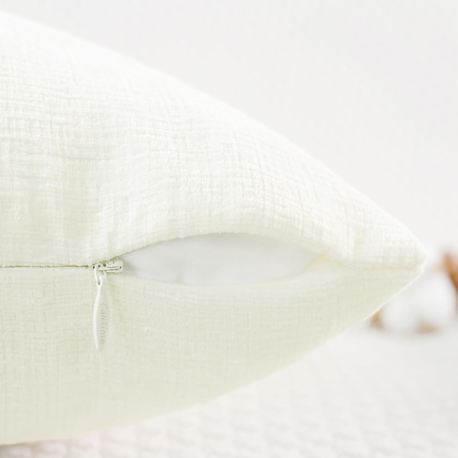 CaliTime Throw Pillow Covers Decorative 16 X 26 Inches Pack of 2 Cozy Chenille Cushion Cases for Couch Sofa Bed Living Room Home Cream