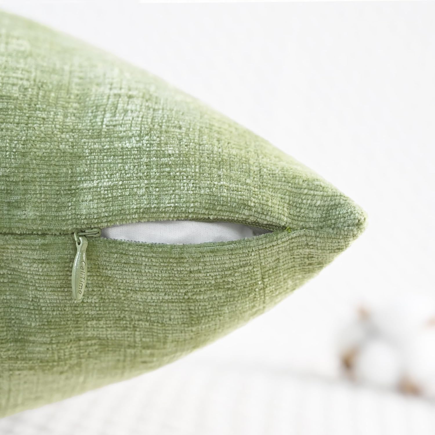 CaliTime Throw Pillow Covers Decorative 16 X 26 Inches Pack of 2 Cozy Chenille Cushion Cases for Couch Sofa Bed Living Room Home Sage Green