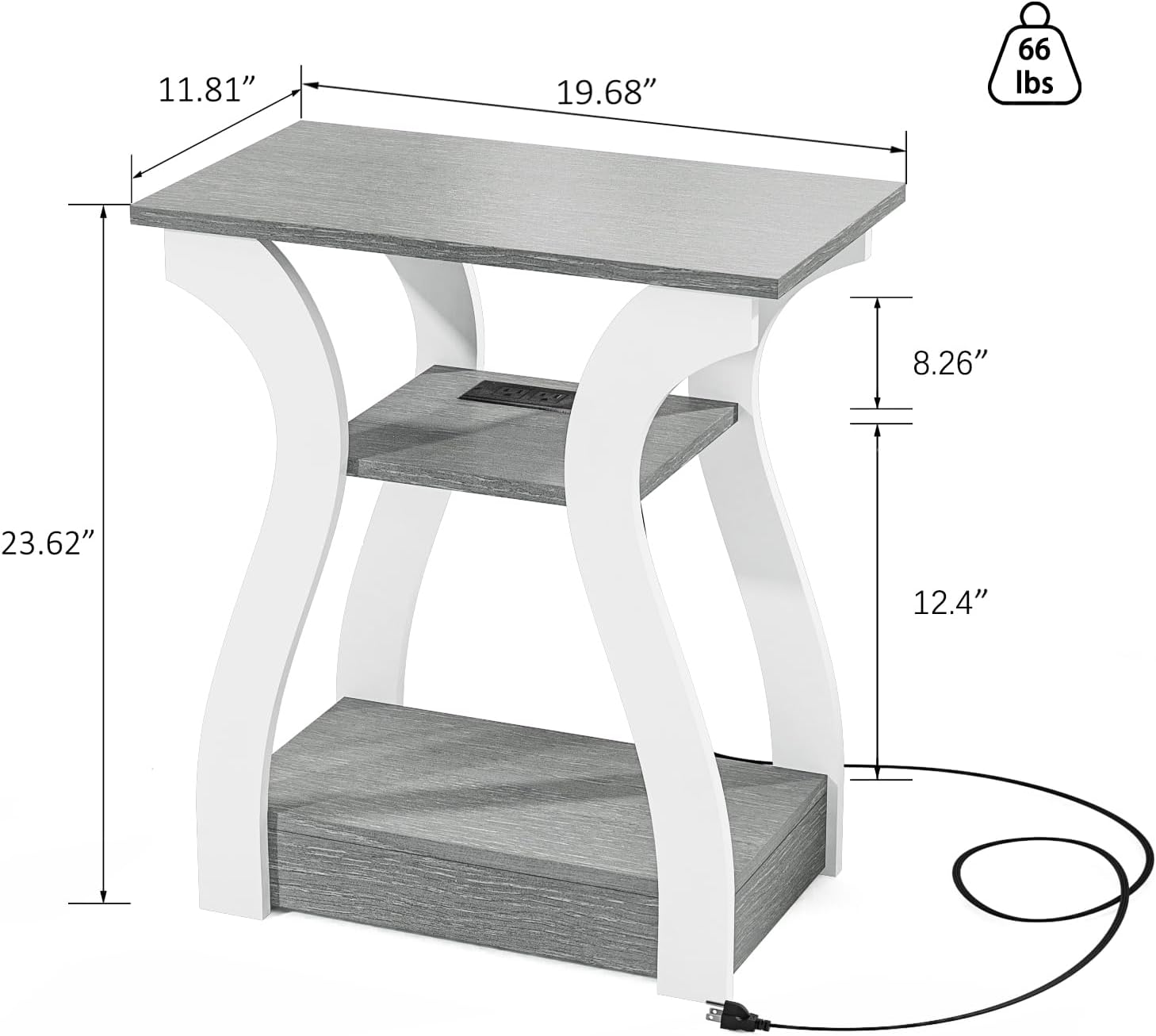 End Tables Living Room, Grey End Table with Charging Station, Grey Side Table, Nightstand for Bedroom, 3 Tier End Table with Storage Shelf for Living Room