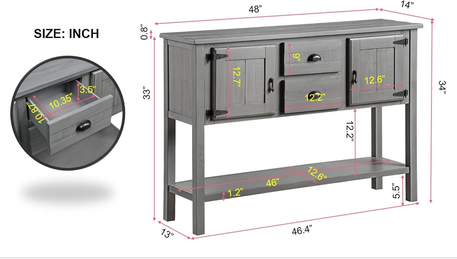 - 【Retro Sofa Table】The console table 48 '' L* 14 '' W*34'' H .Solid Wood Sideboard Console Table features a retro design that adds a touch of vintage charm to your foyer, entryway, or dining room. Its classic aesthetic enhances the overall ambiance of your space.