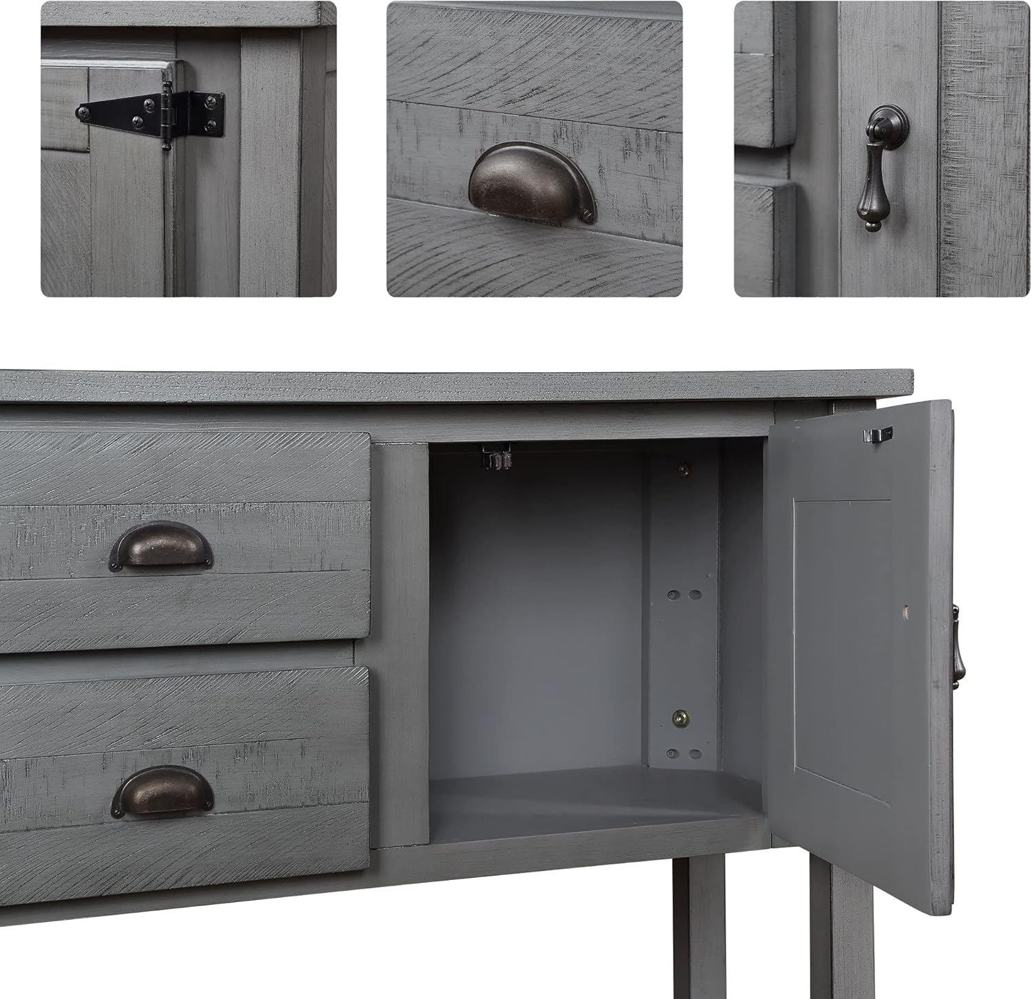 Solid Wood Farmhouse Console Table Sofa Table with Storage Drawers and Shelves for Storage Entry Hallway Foyer Sofa Side Table(48" Gray)
