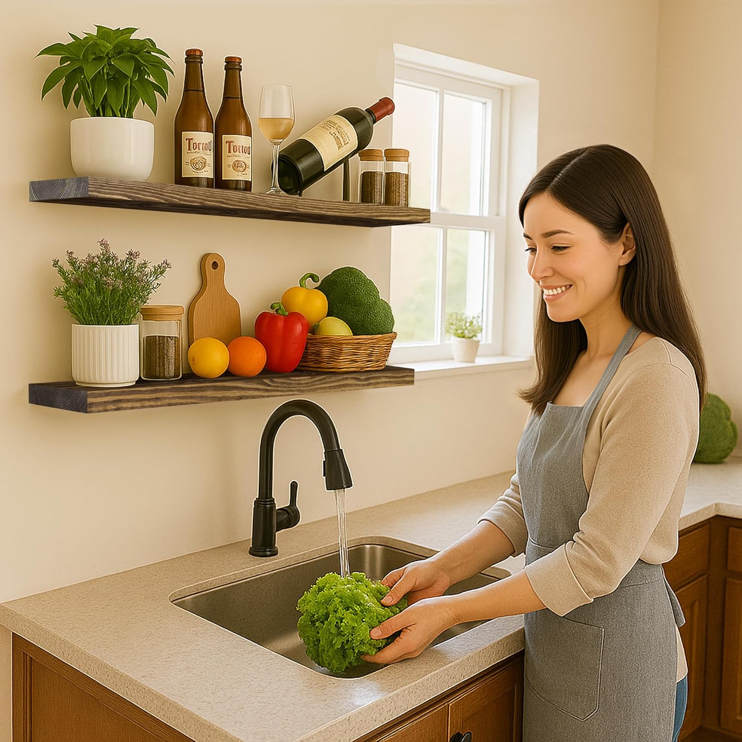 - MODERN RUSTIC LOOK - The floating shelves are made of 100% natural pine, and the wood has different nodes and grains, so the color of each shelf may be slightly different, but equally stunning