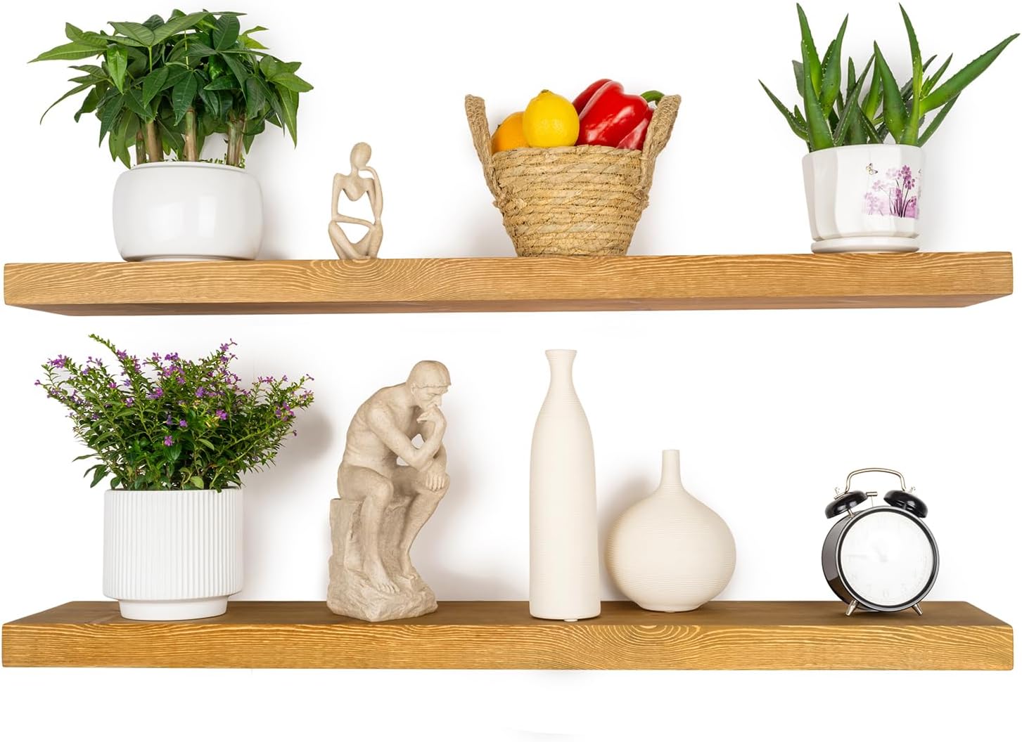 - MODERN RUSTIC LOOK - The floating shelves are made of natural pine, and the wood has different nodes and grains, so the color of each shelf may be slightly different, but equally stunning!