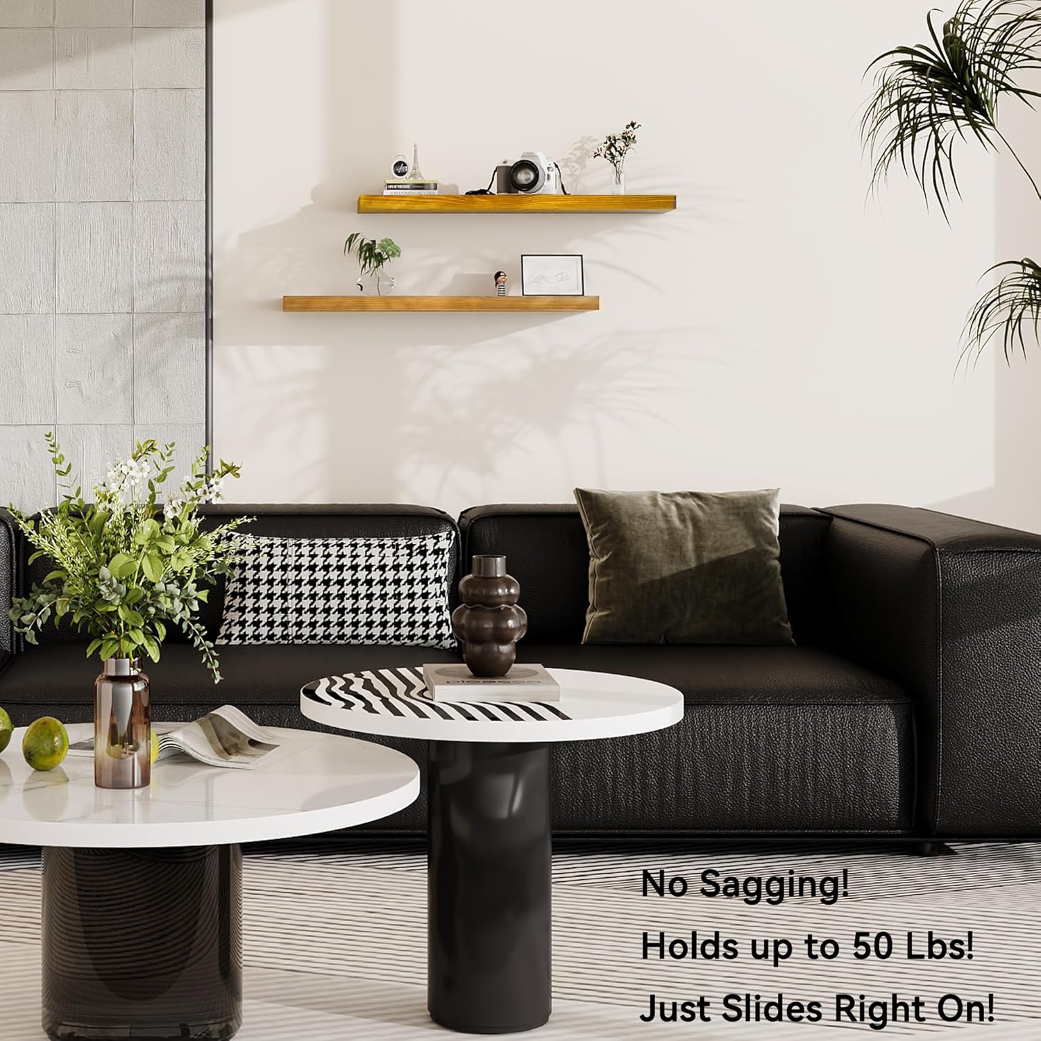 - NO SAGGING! MORE PERFECT FOR AMERICAN WALLS : BGMG premium wood shelves are built to last and hold up to 50 pounds using our smart brackets designed specifically for American wall studs, which are typically 16 inches apart! The brackets warp slightly upward to prevent the shelves from sagging and falling off!