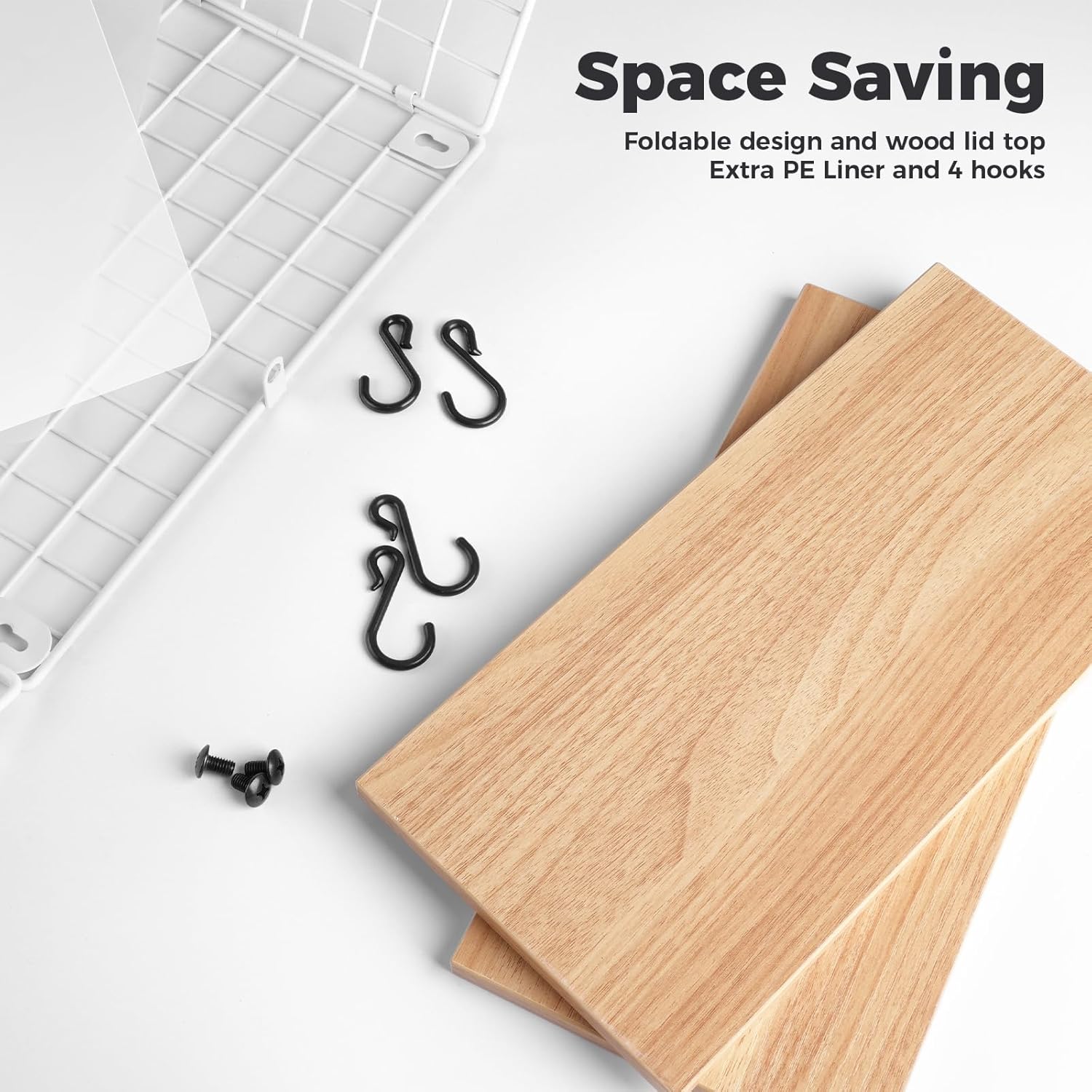 - Space-Saving Solution: Optimize your kitchen and pantry storage with this foldable wire metal basket design. The produce basket's wood lid top offers additional storage without occupying too much space. Our fruit holder for kitchen countertop is easy to assemble, - simply secure the basket and tighten with a screwdriver