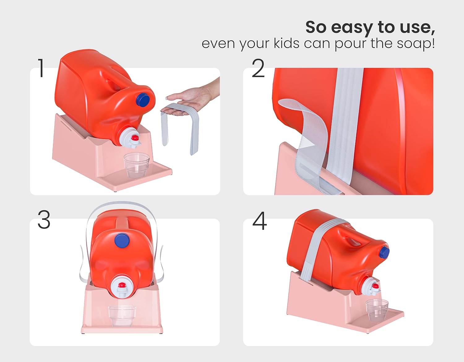 - [Effortless Soap Dispensing:] The angled design of our laundry soap organizer allows for easy soap pouring without the need to tilt or lift heavy detergent bottles, saving you time and effort during laundry.