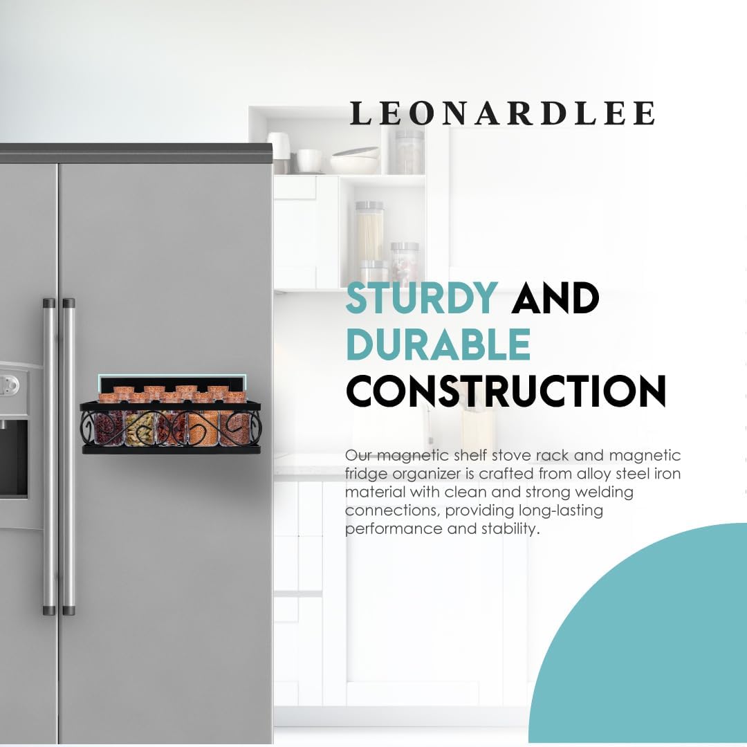 LEONARDLEE Magnetic spice Rack, Stronger Magnet with Wall Mount Option. 4 Removable Hooks, Perfect Space Saver for Kitchen- for Holding Spices, Jars, Bottle, cans (Pack of 2)