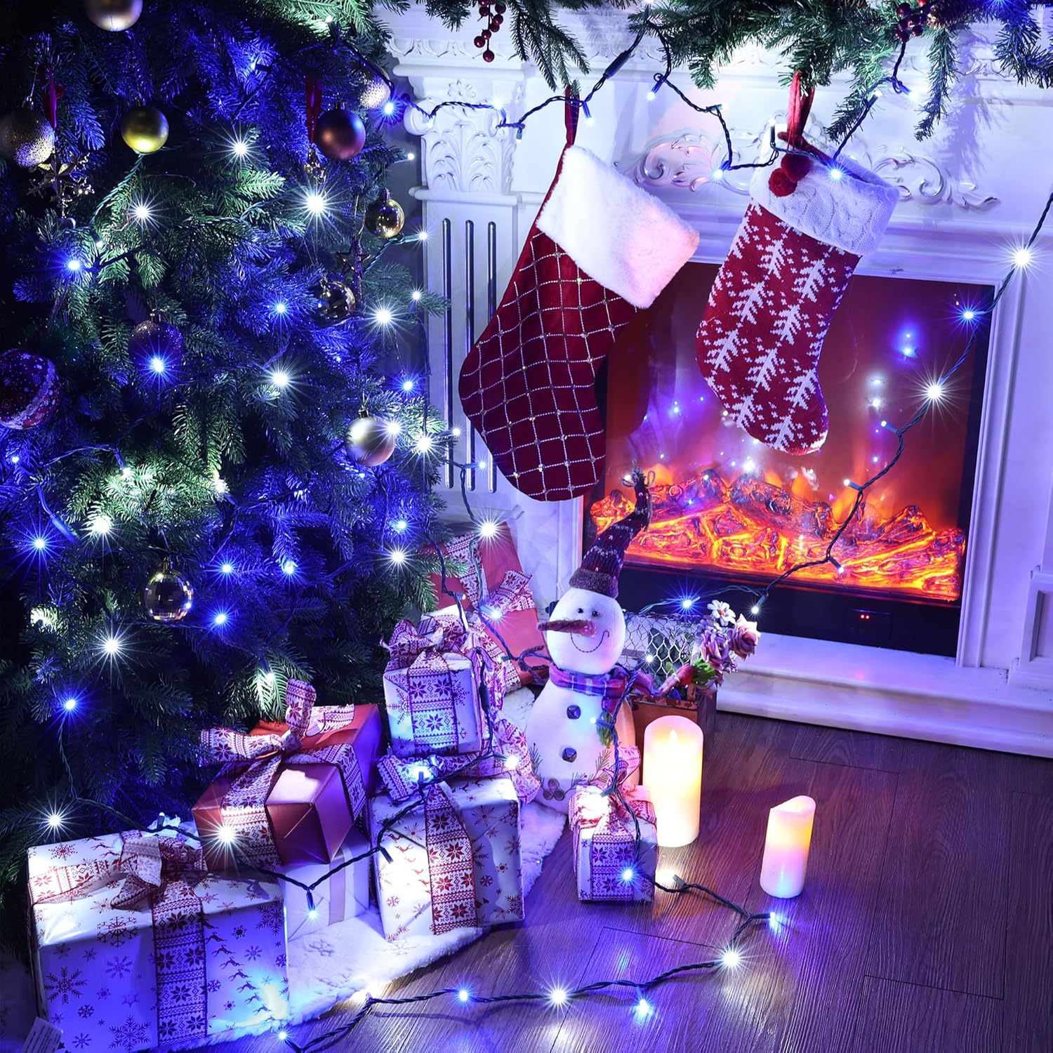 - UL Certified, Waterproof led Christmas Lights Outdoor: IP44 waterproof blue and white Xmas tree lights, UL Certified; approved for indoor/outdoor use. Ideal for indoor/ outdoor Christmas, tree, party and home decorations