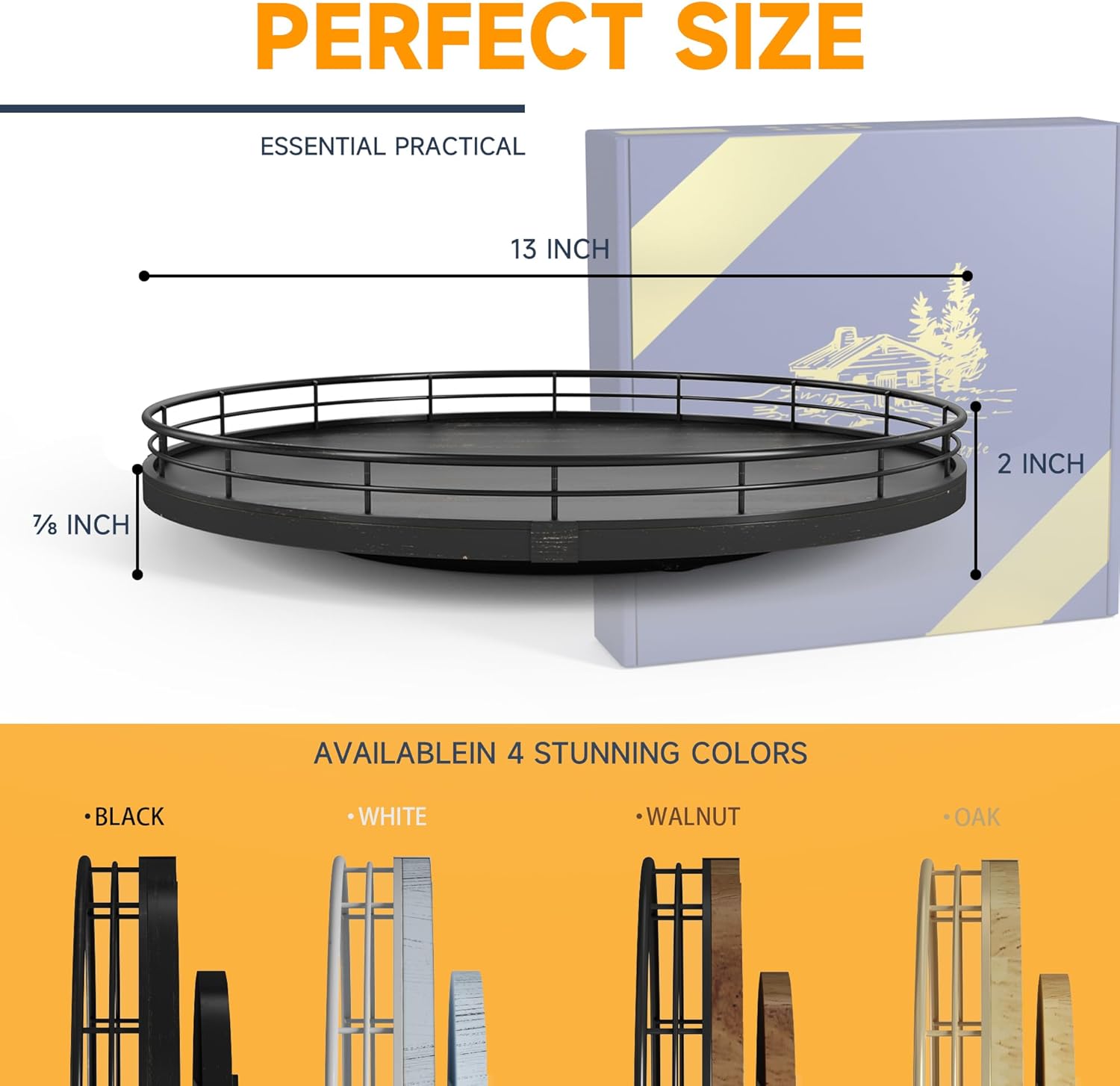 13" Oak Bathroom Vanity Tray Turntable for Perfume Candle, Round Wooden Decorative Tray for Kitchen Sink Countertop Organizer, Bathroom Counter Organizer for Skincare Makeup, Farmhouse Black Gold